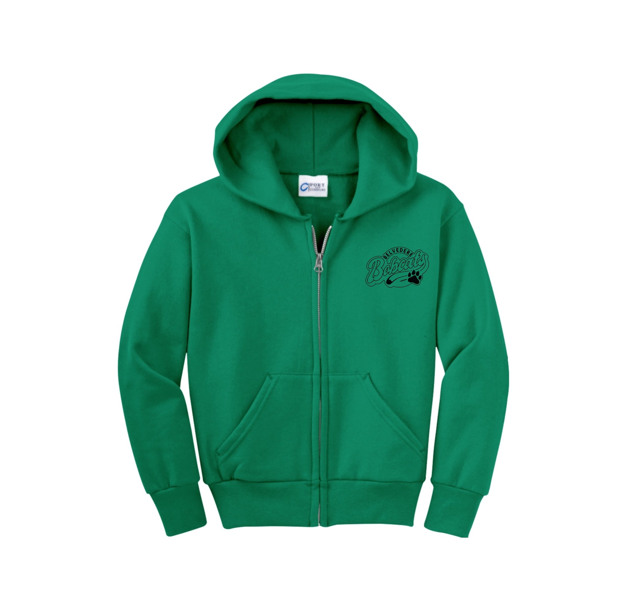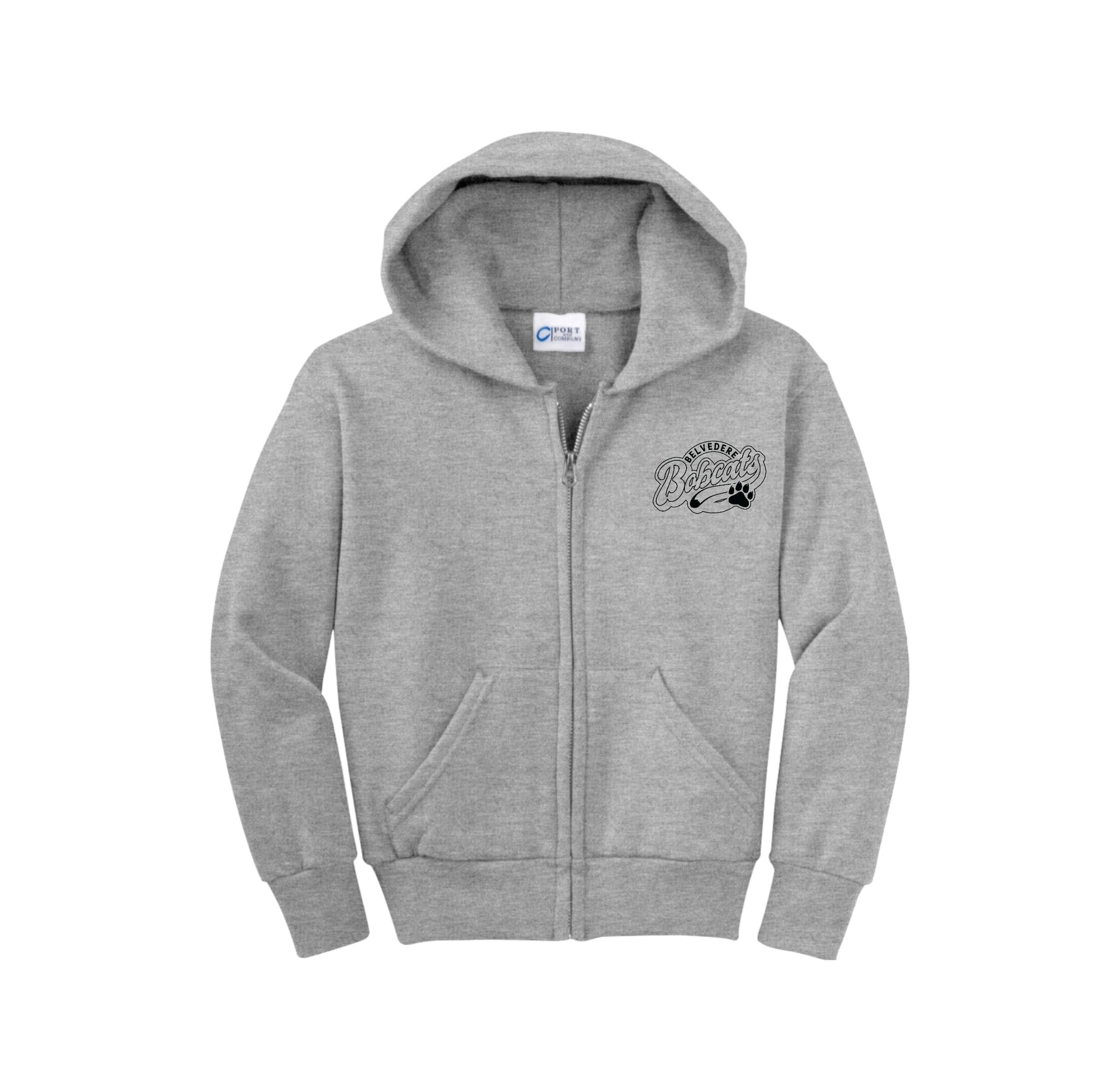 Stay cozy in our core-weight 7.8-ounce fleece hoodie, made from a soft 50/50 cotton/poly blend with air jet yarn, featuring a YKK metal zipper, front pockets, a removable tag for added comfort, and a two-ply hood with no drawcord.