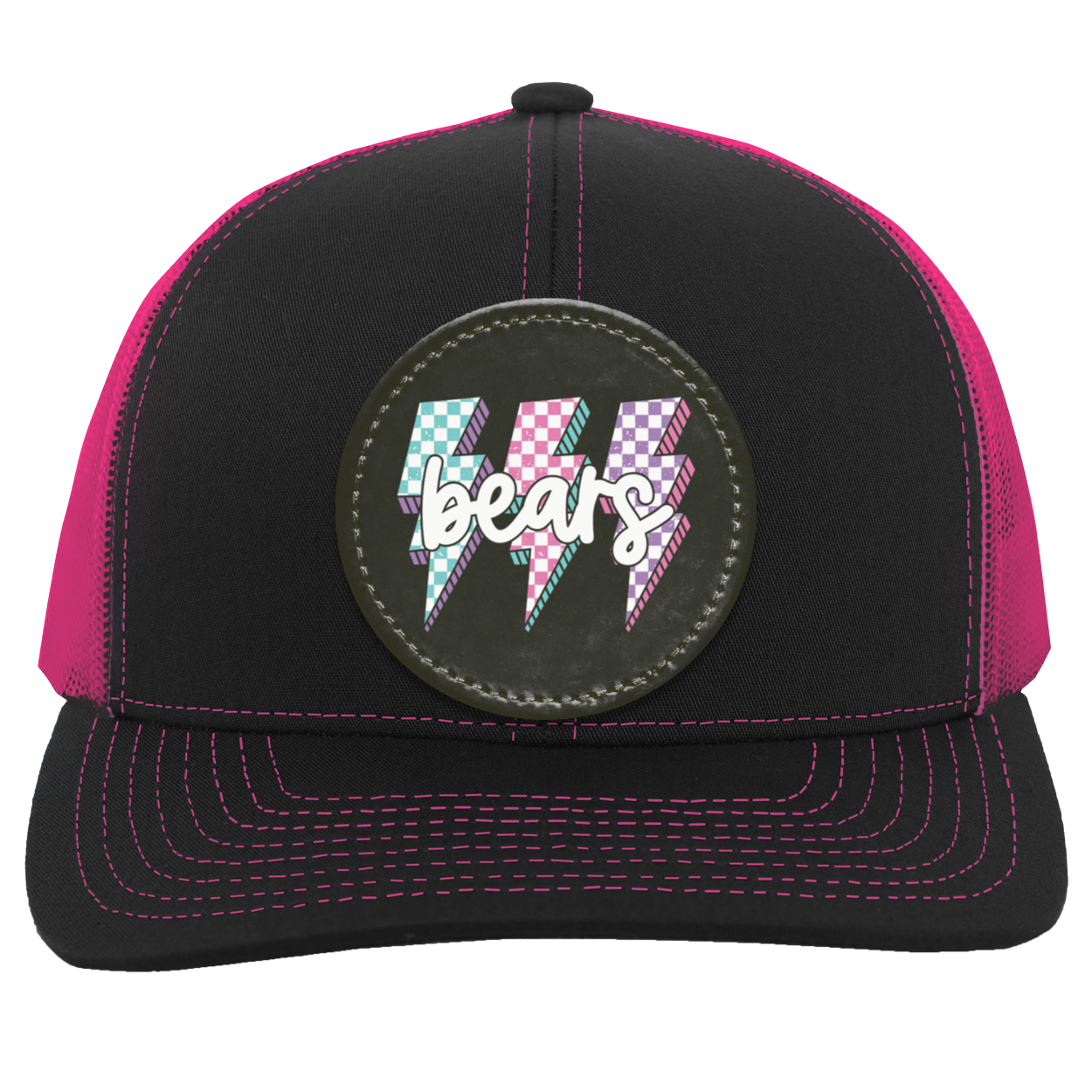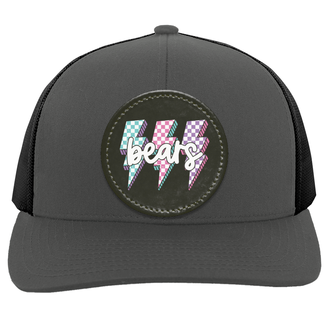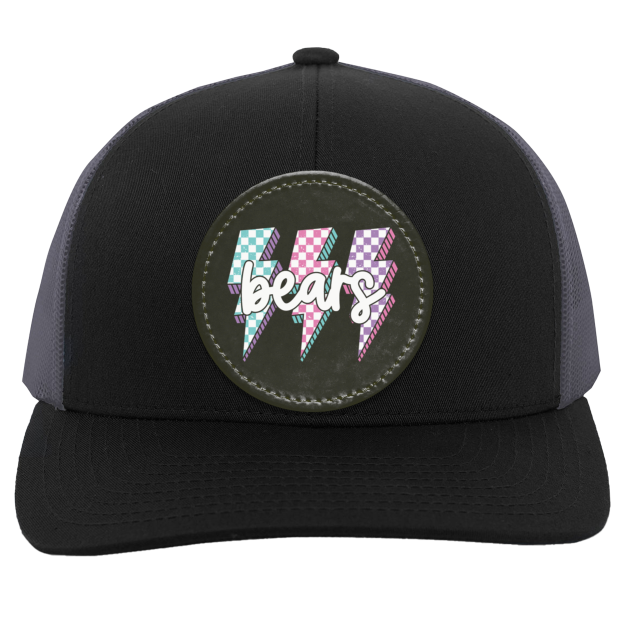 Cotton/Poly Blend Front Panels & Curved VisorTrucker Mesh back with Snap Closure (One Size Fits Most)Mid-profile & Pro-Model Crown for a comfortable & stylish fitDecoration type: Sublimated Vegan Leather Patch