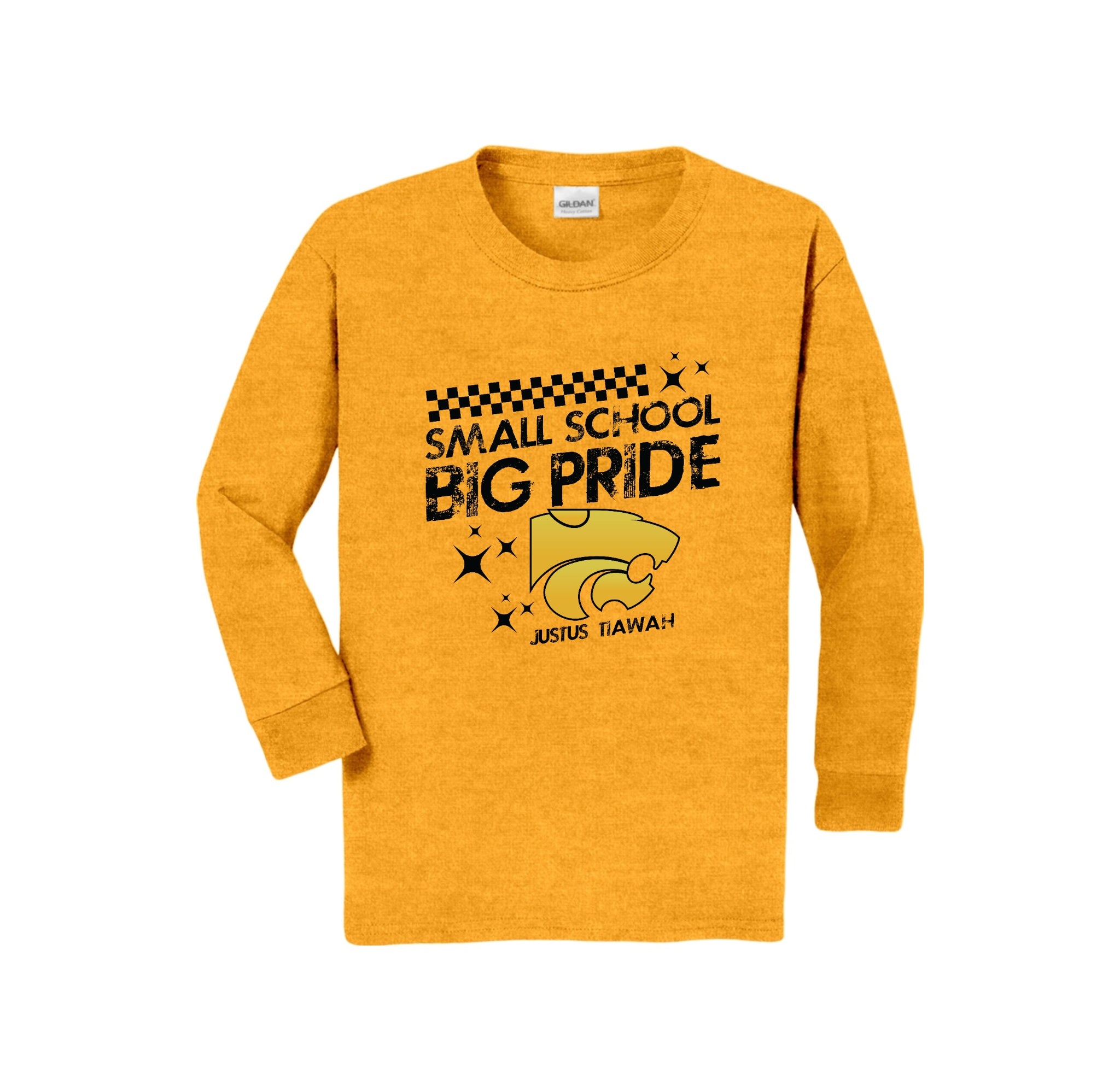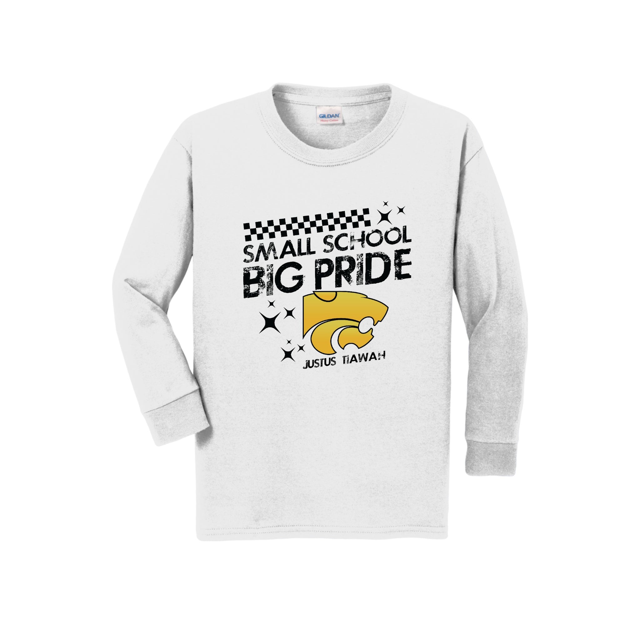 Justus-Tiawah School Spirit Wear On-Demand-Youth Unisex Gildan Long Sleeve Tee On-Demand Checkered Logo