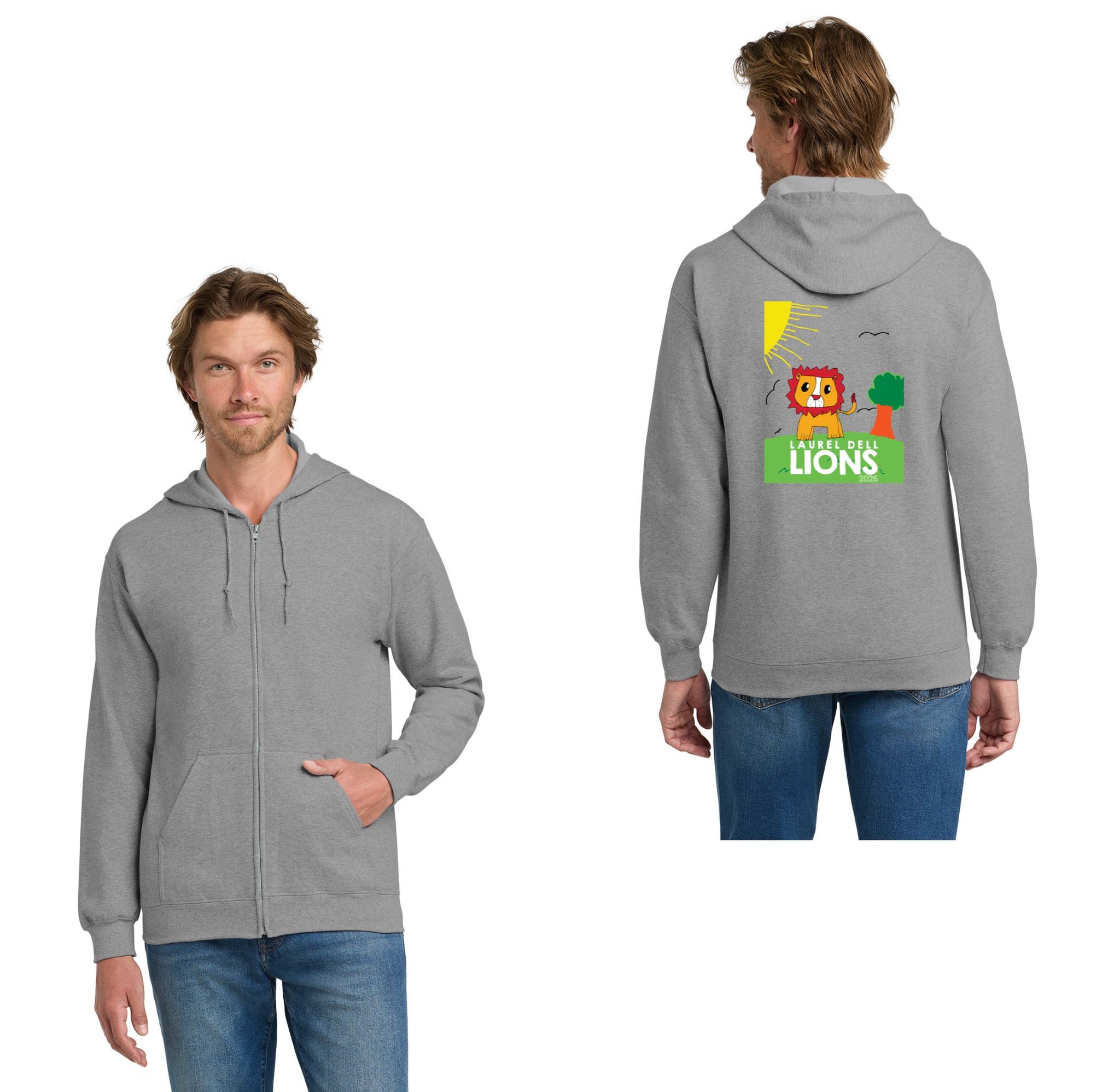Unisex Full-Zip Hooded Sweatshirt Size Chart