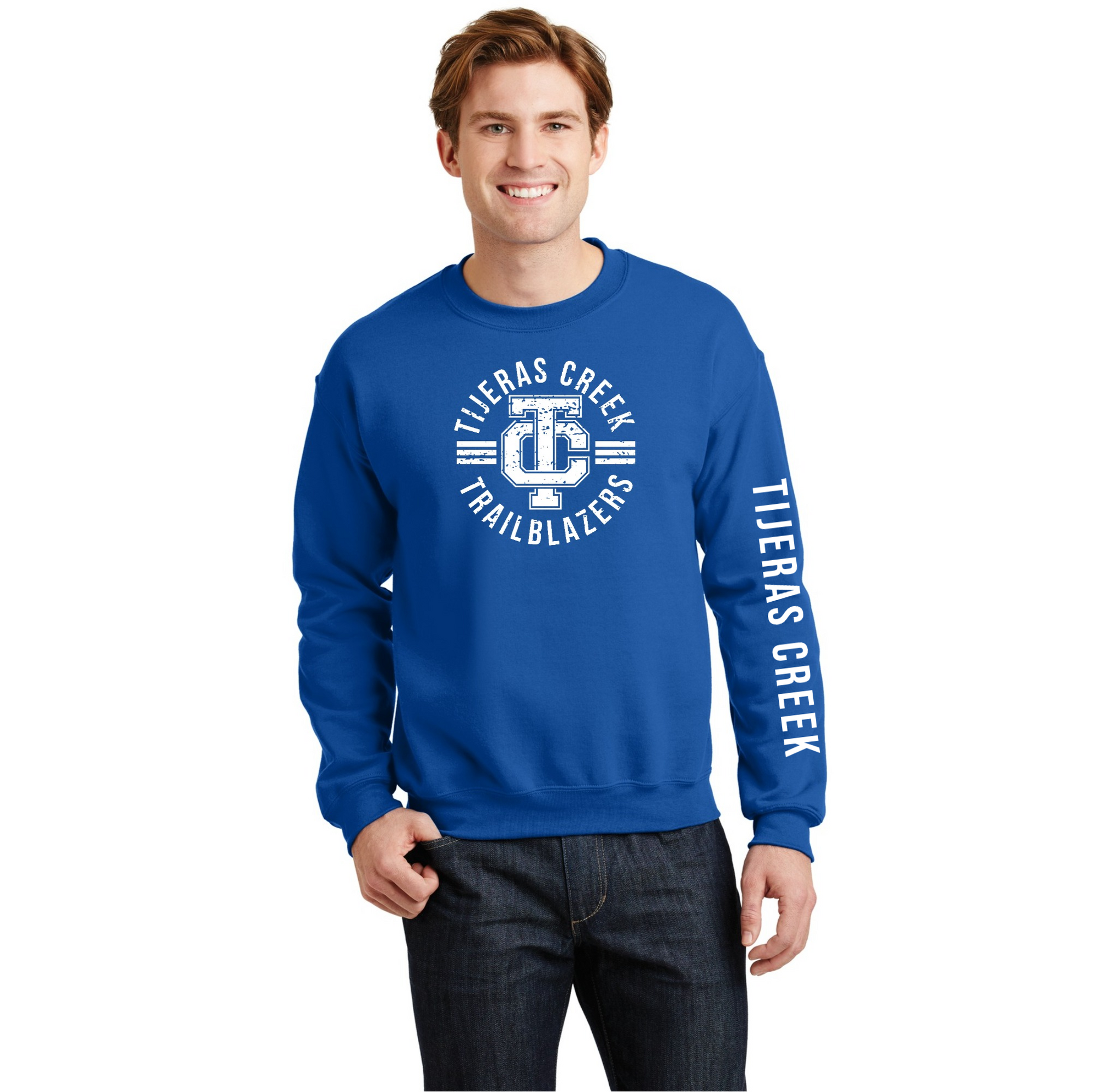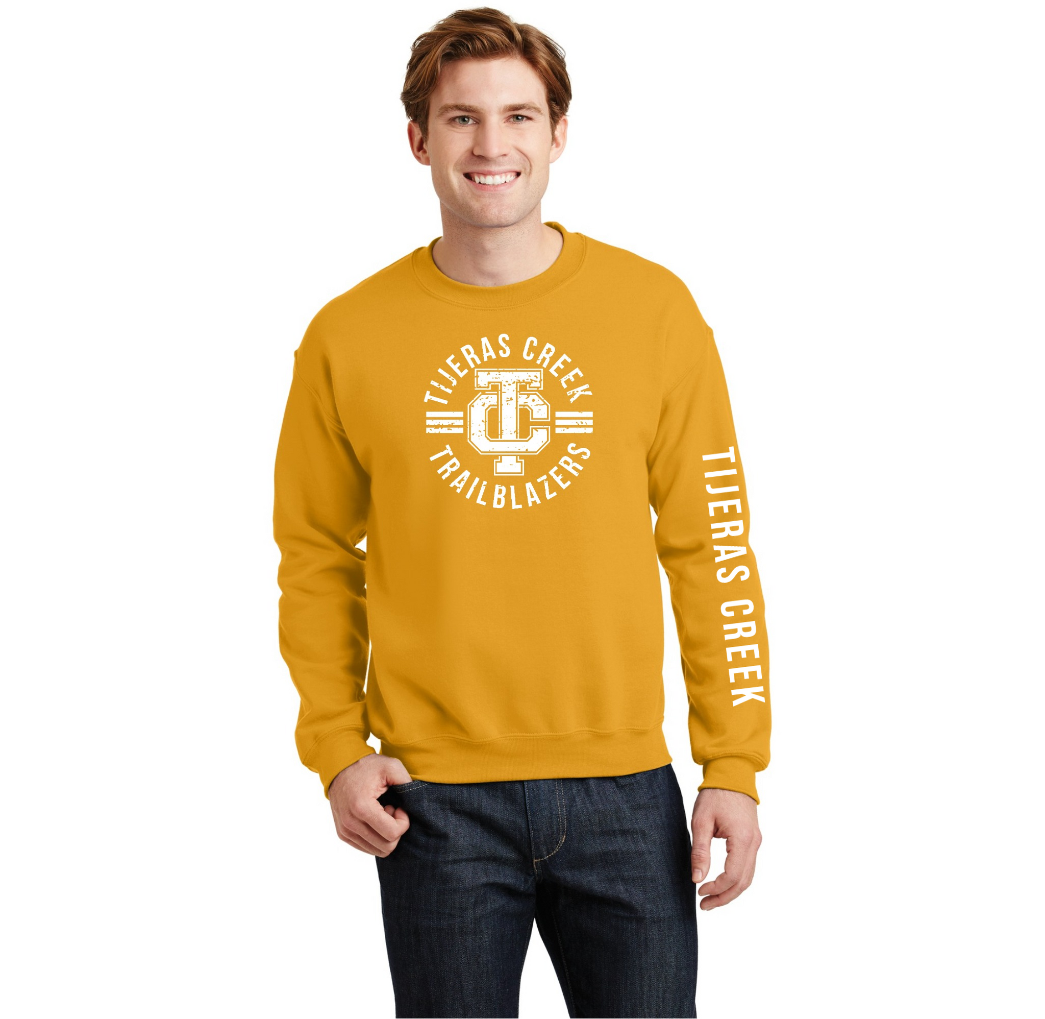 Tijeras Creek Elementary Spirit Wear On-Demand-Adult Gildan Unisex Crewneck Sweatshirt On-Demand_Front & Sleeve