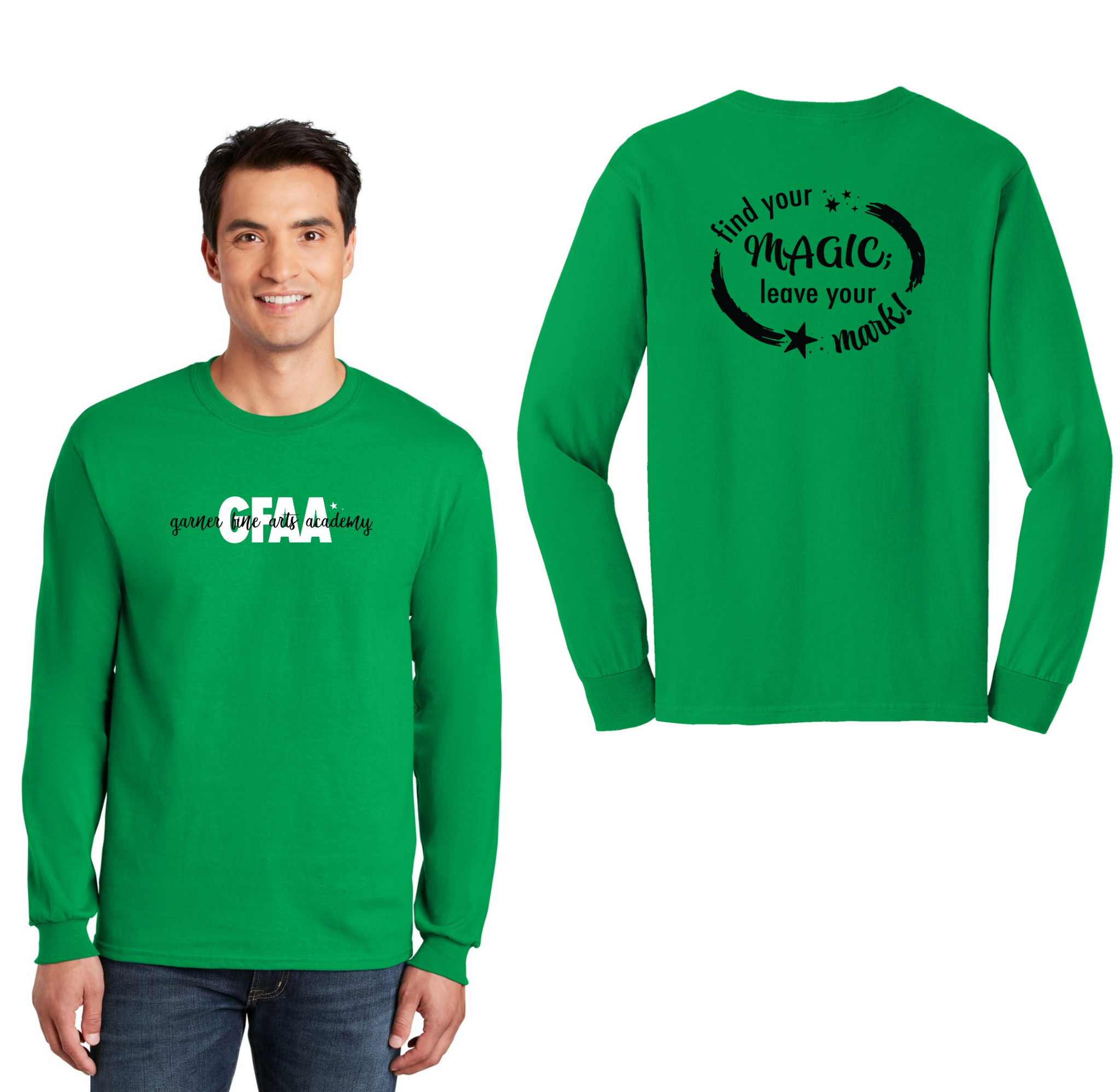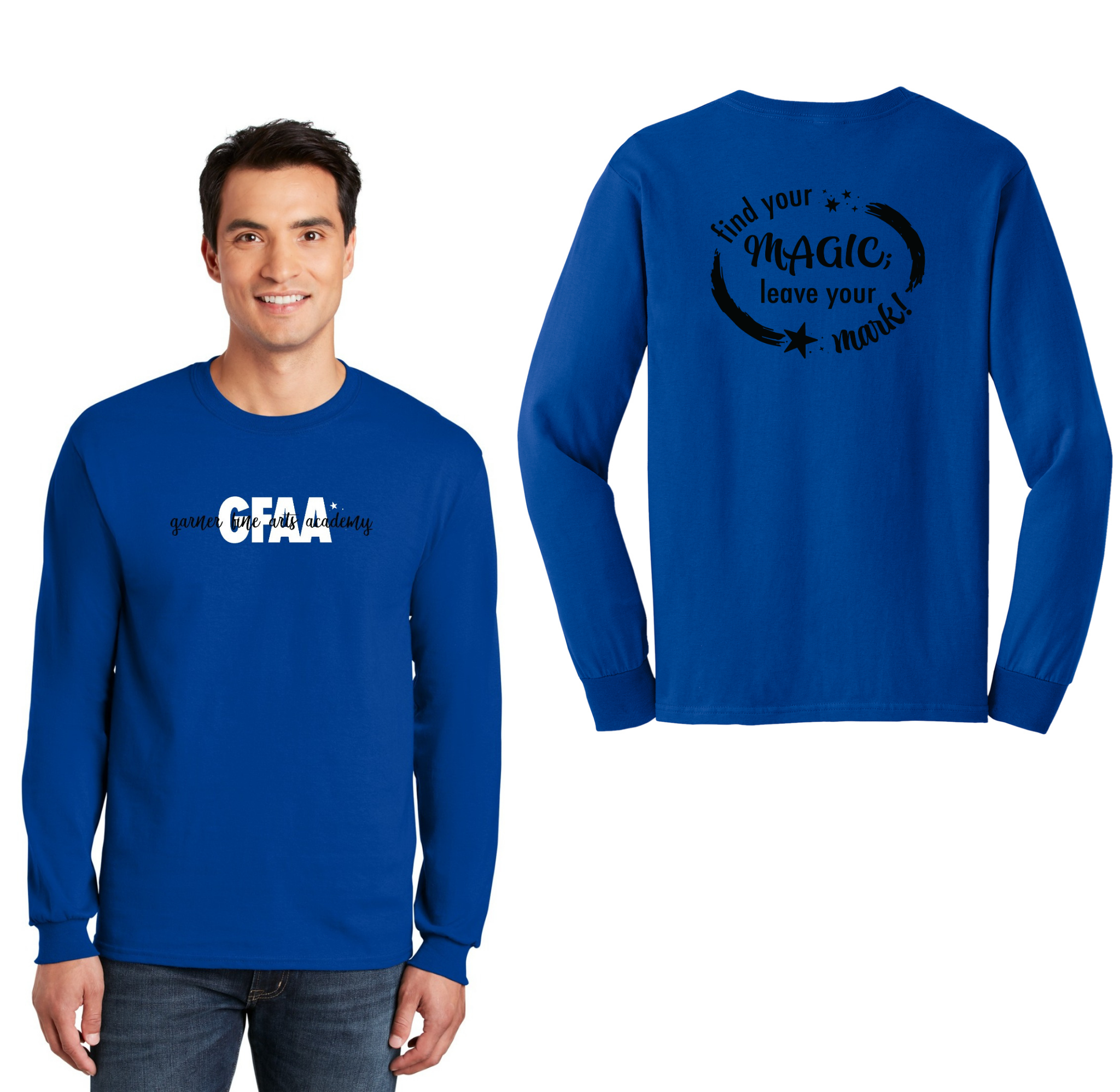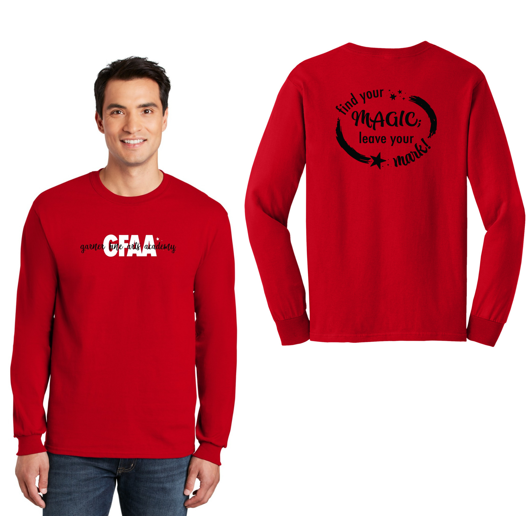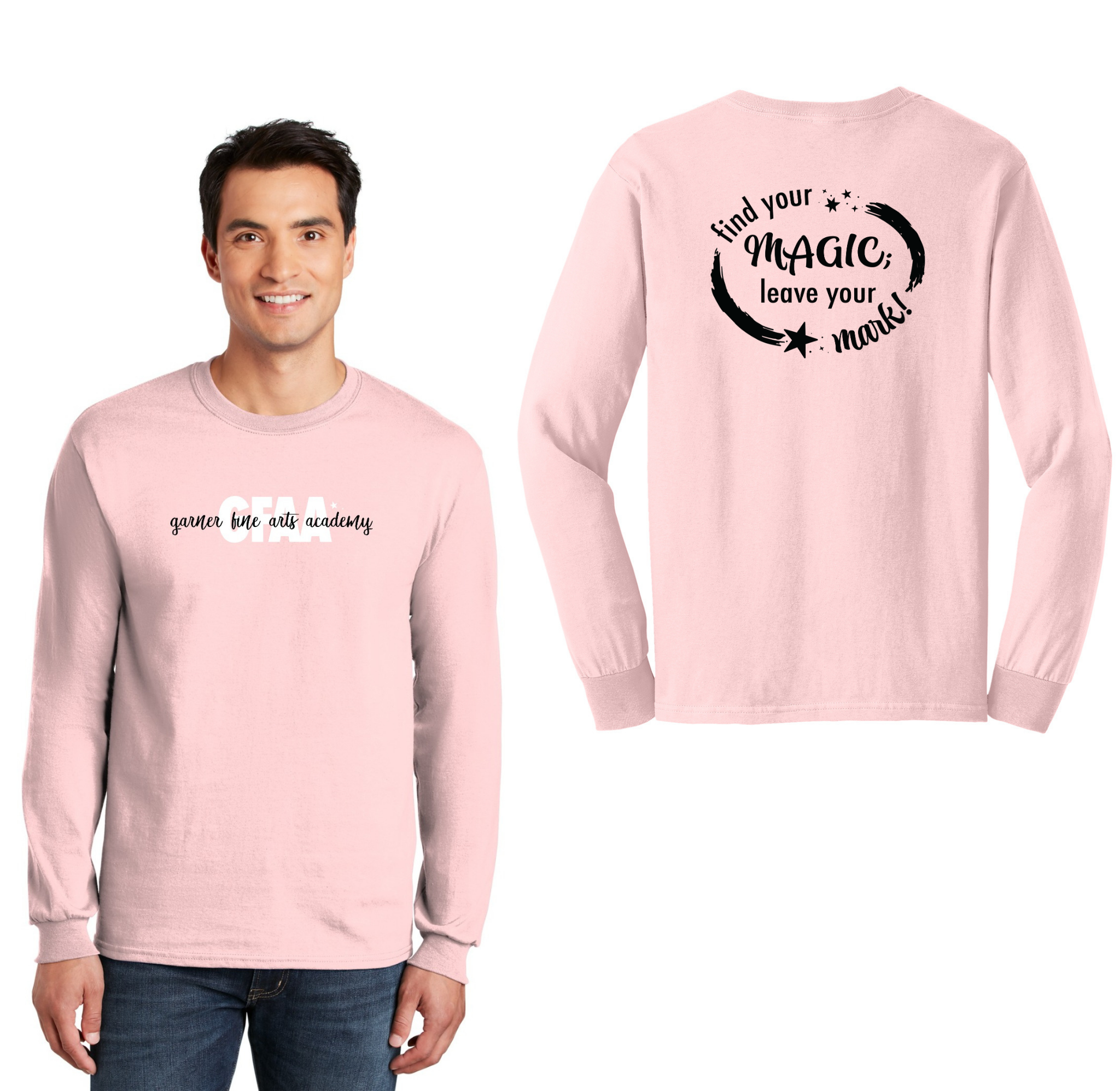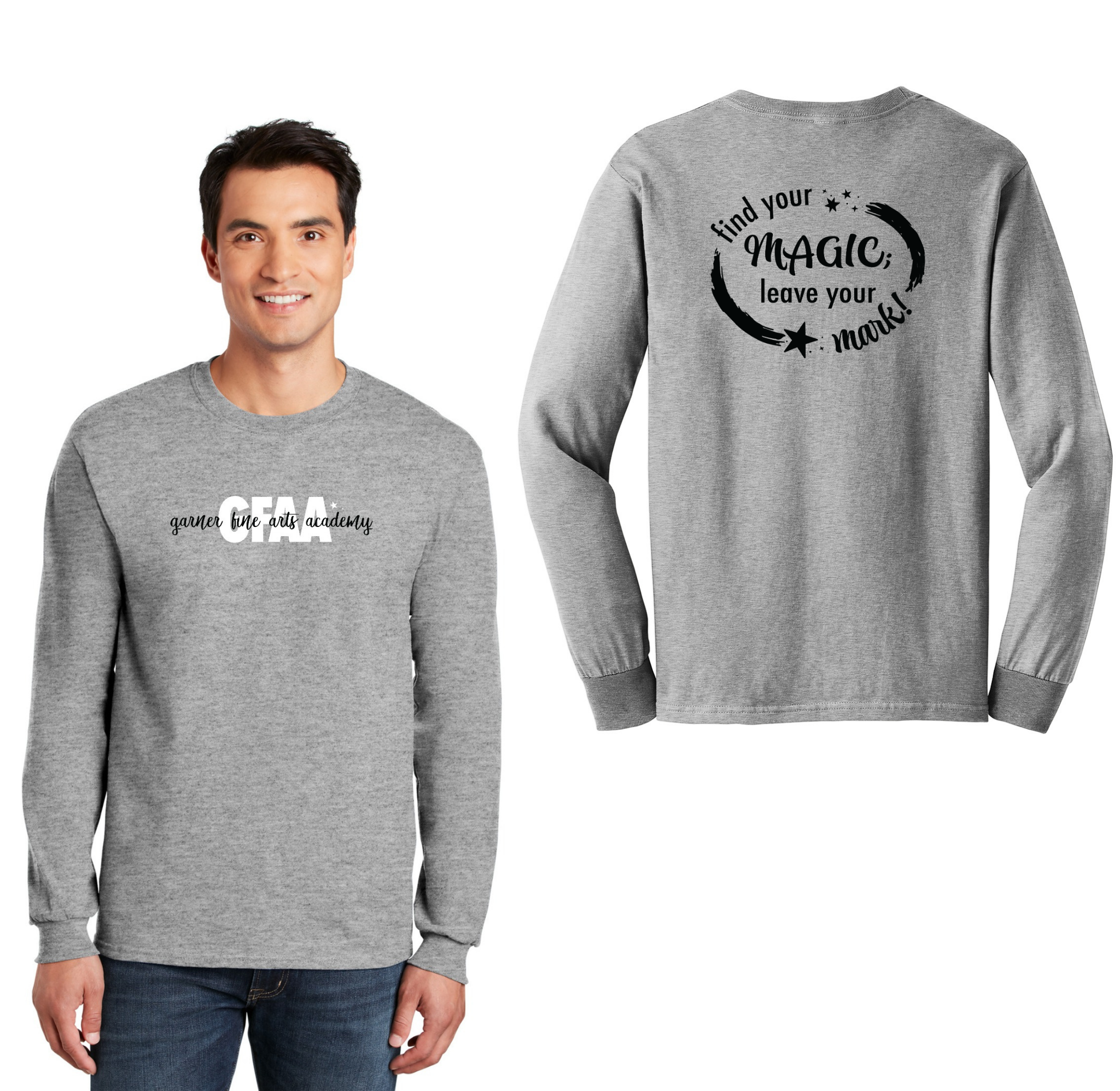Garner Fine Arts Academy Spirit Wear On-Demand-Adult Unisex Gildan Long Sleeve Tee On-Demand Front & Back
