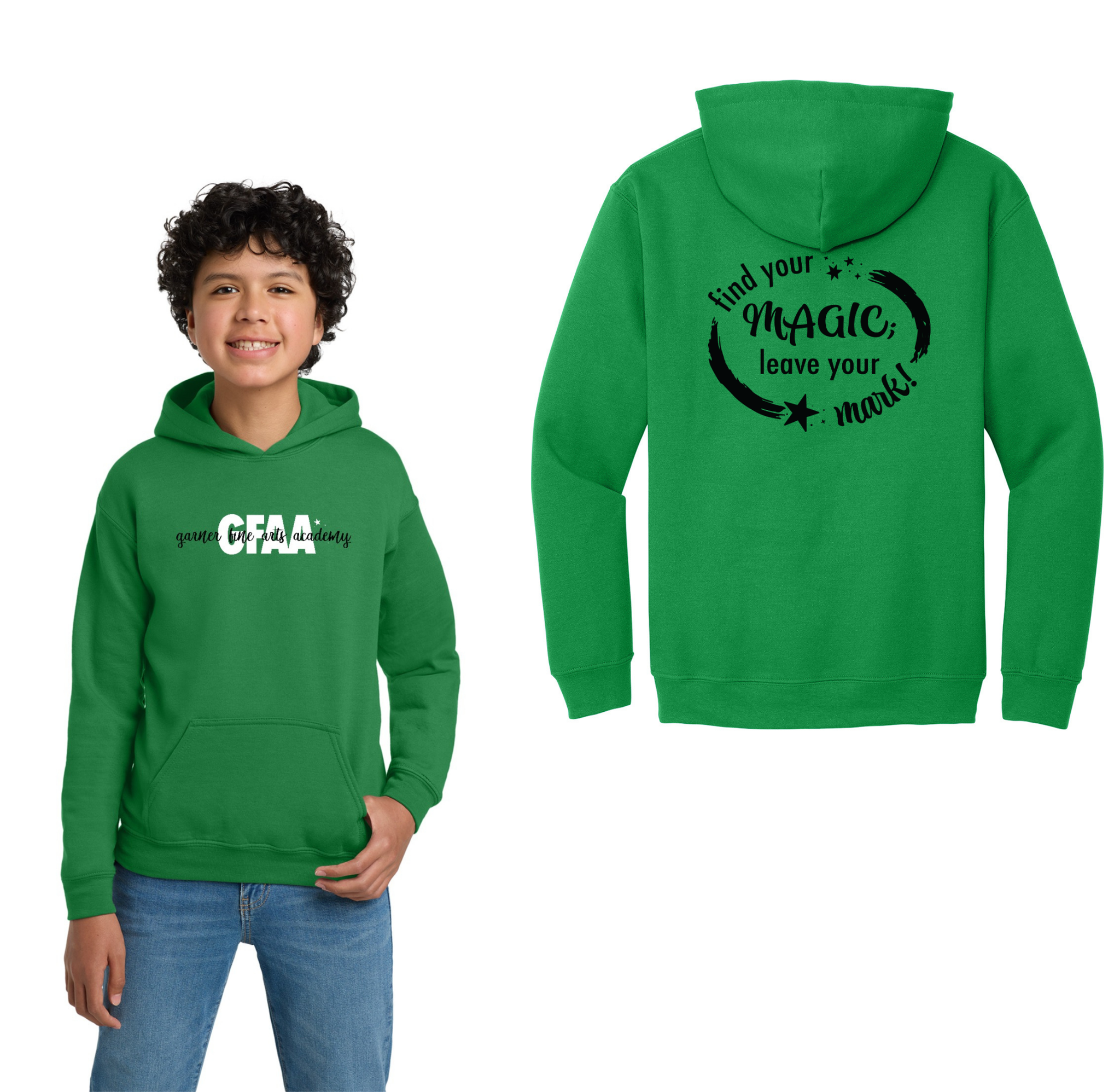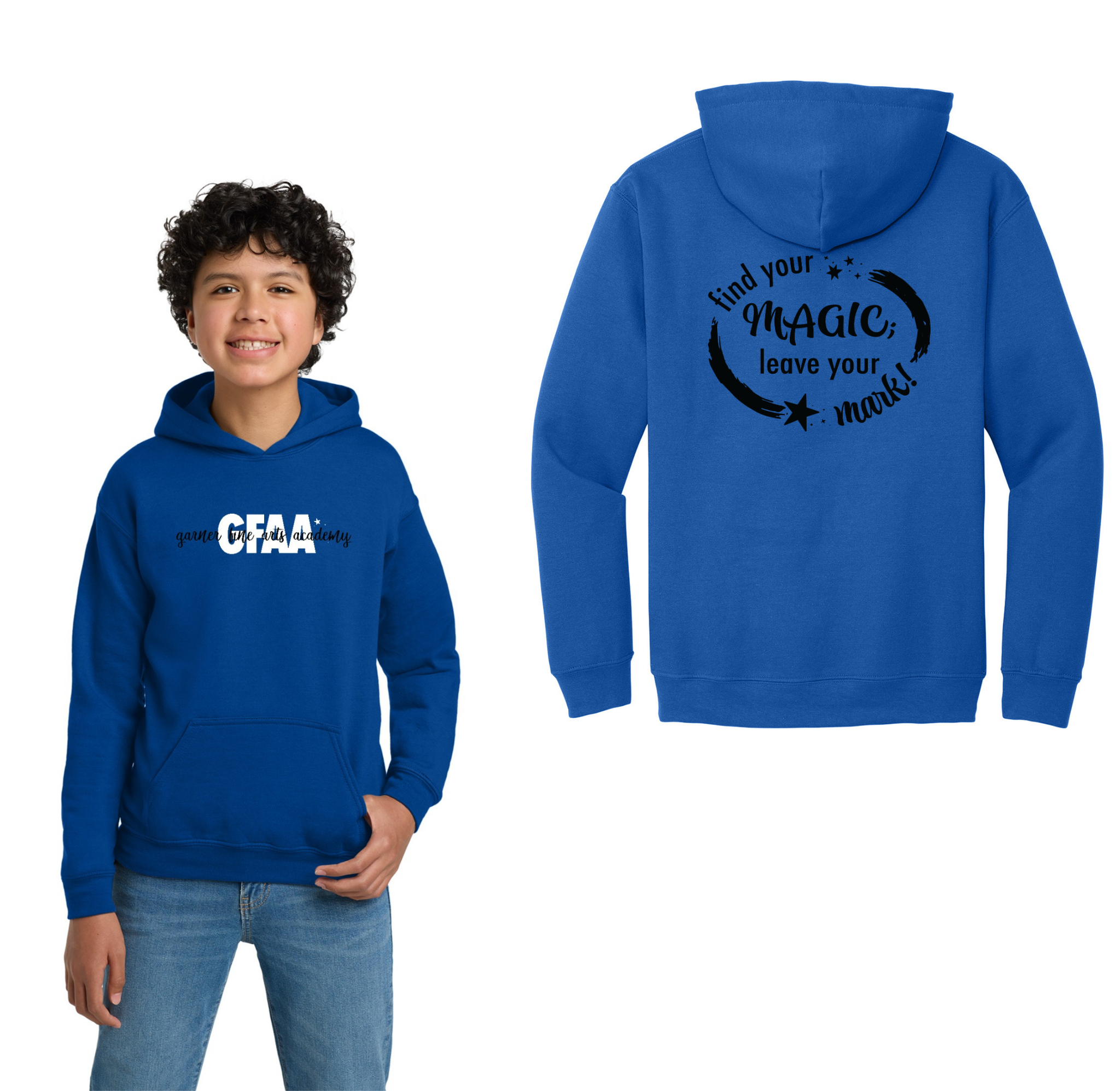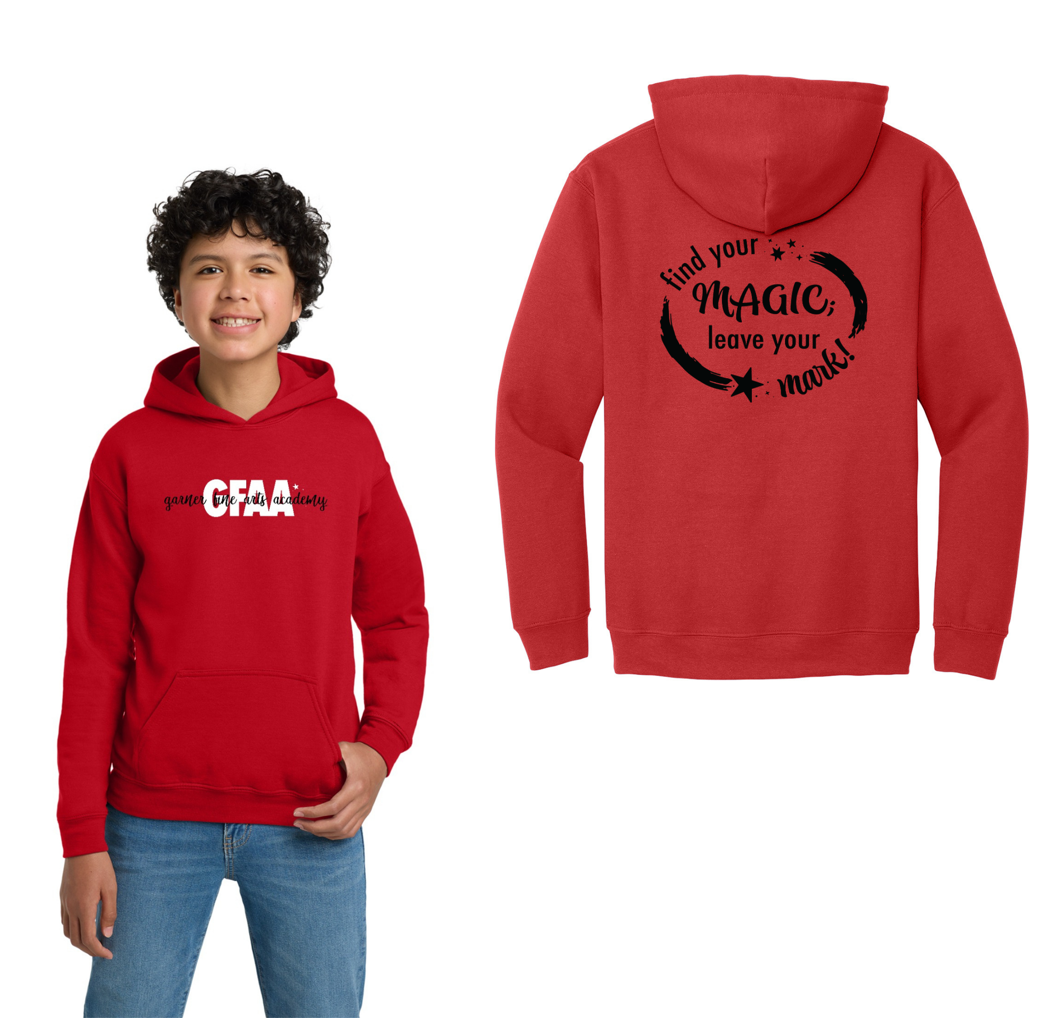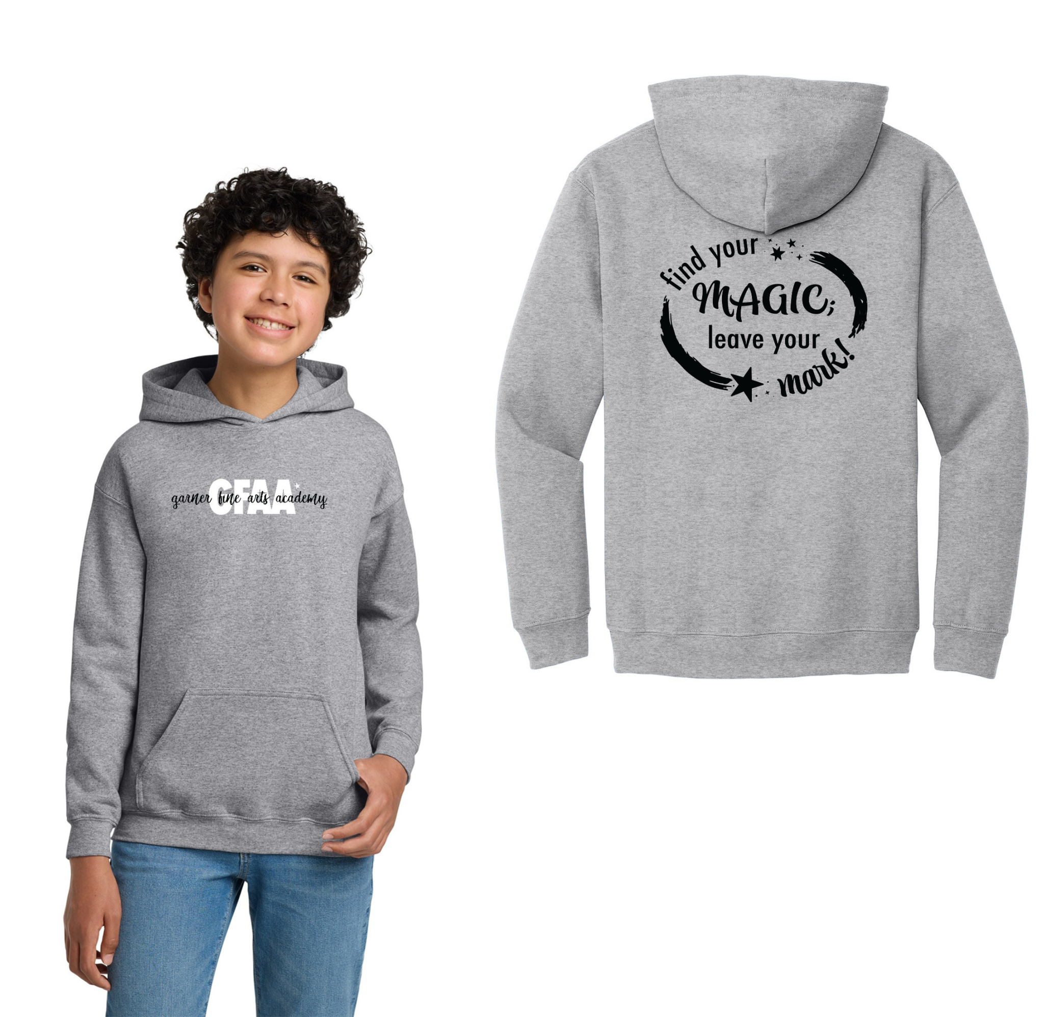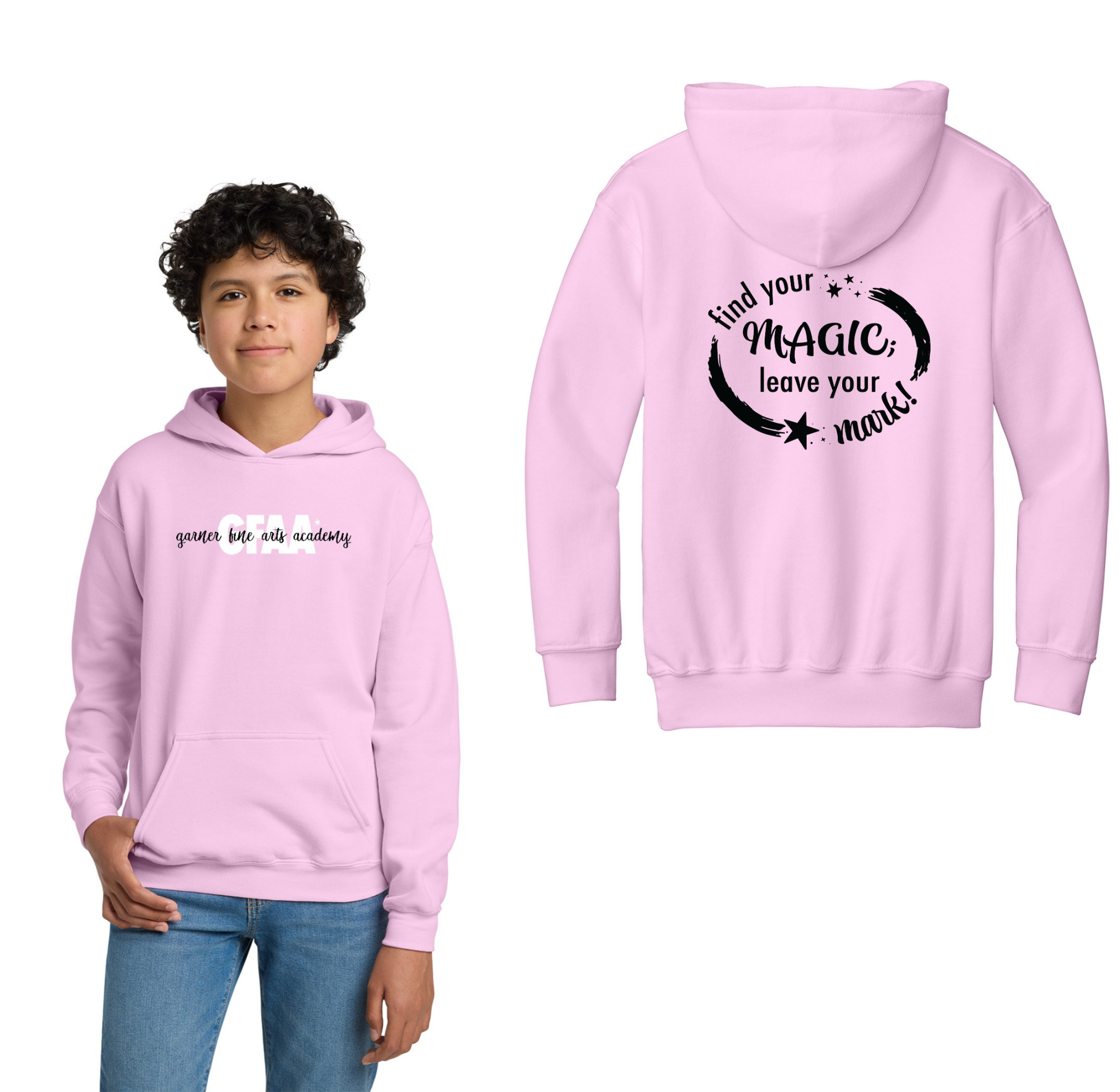Garner Fine Arts Academy Spirit Wear On-Demand-Youth Gildan Unisex Hoodie On-Demand Front & Back