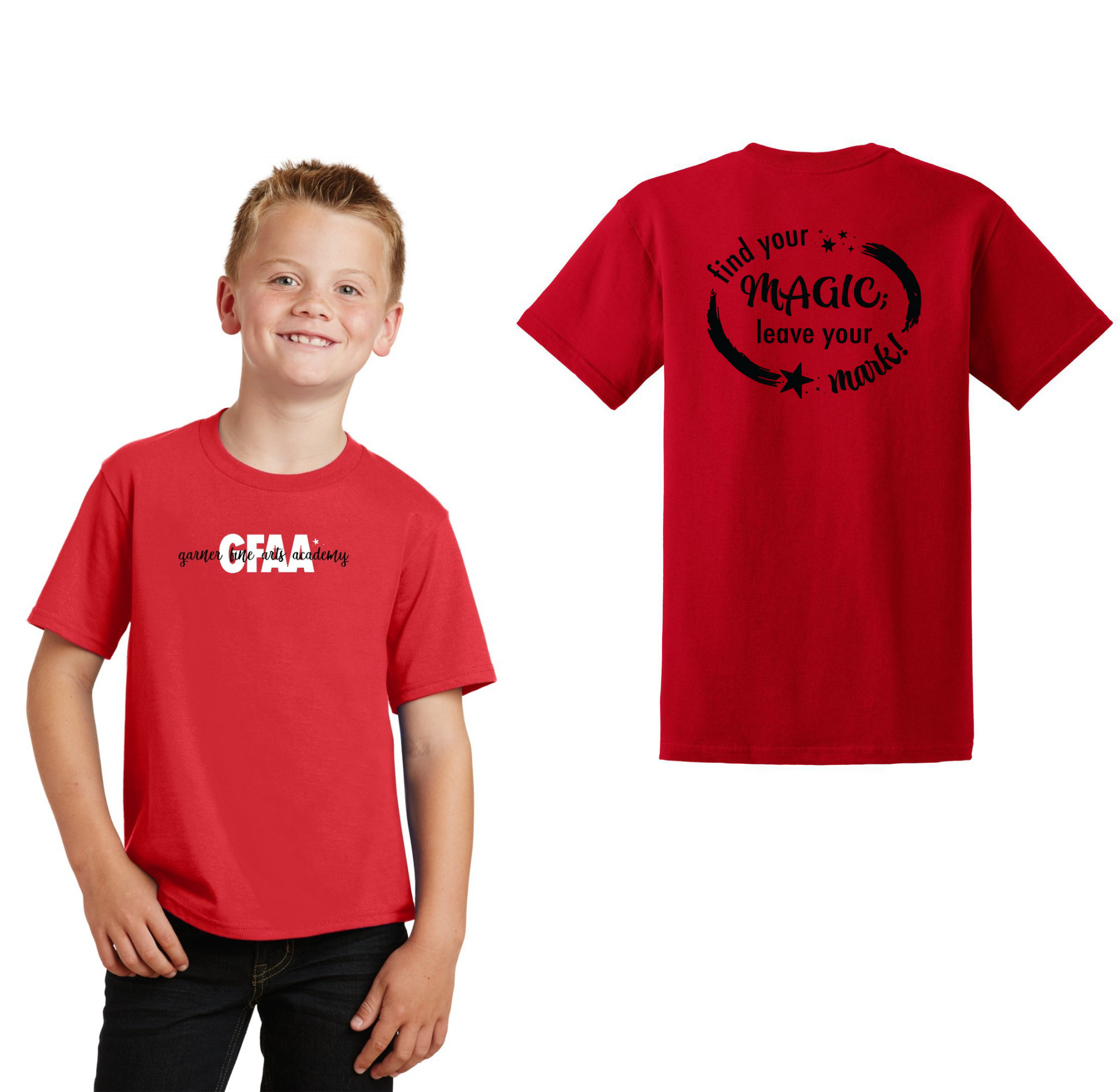 Garner Fine Arts Academy Spirit Wear On-Demand-Youth Unisex Port & Co Fan Favorite Premium Tee On-Demand Front & Back