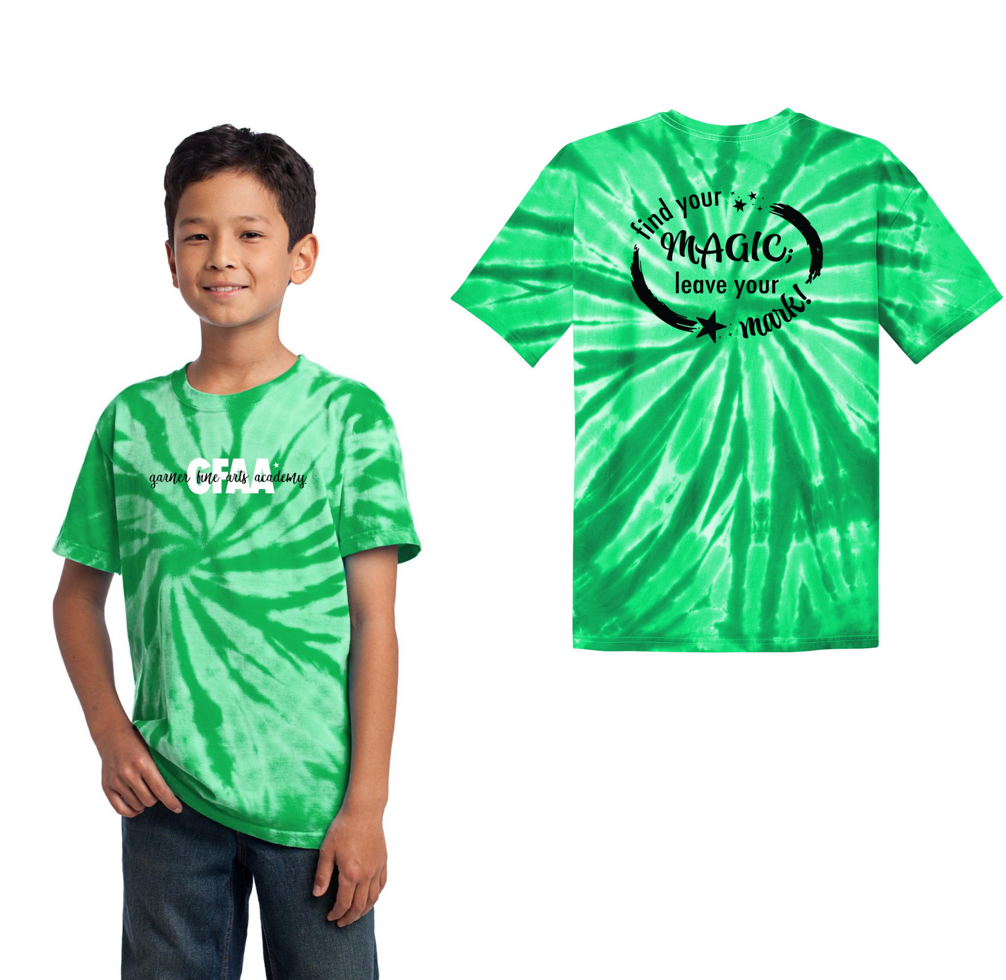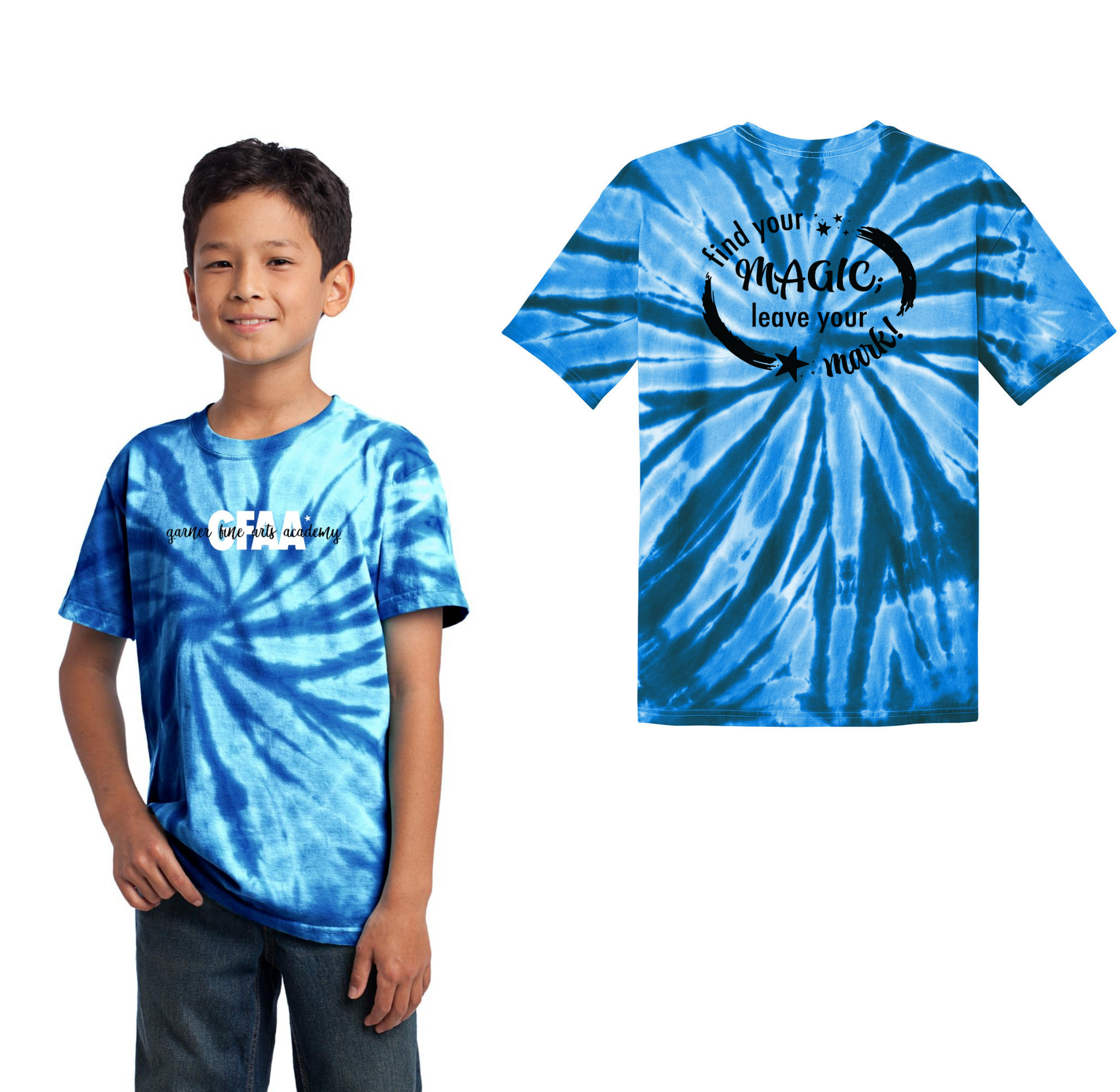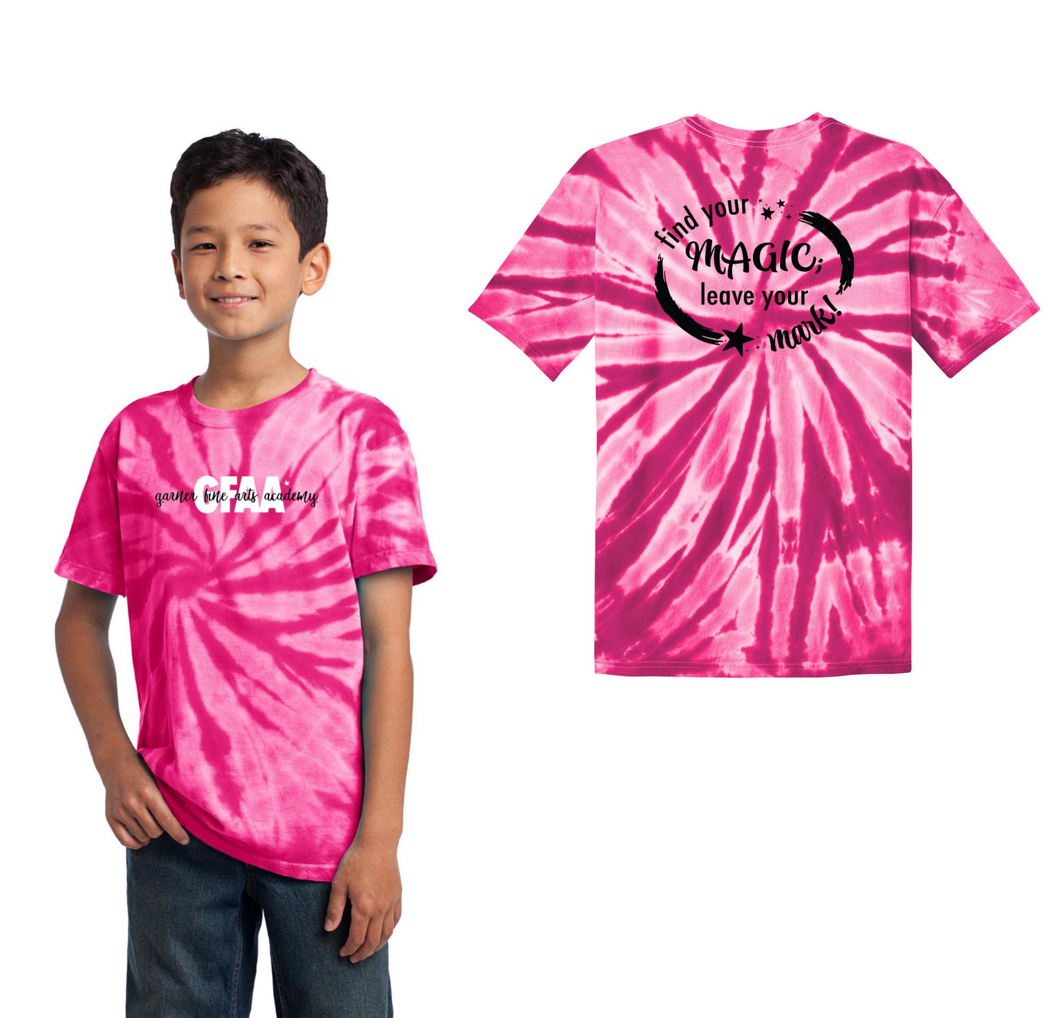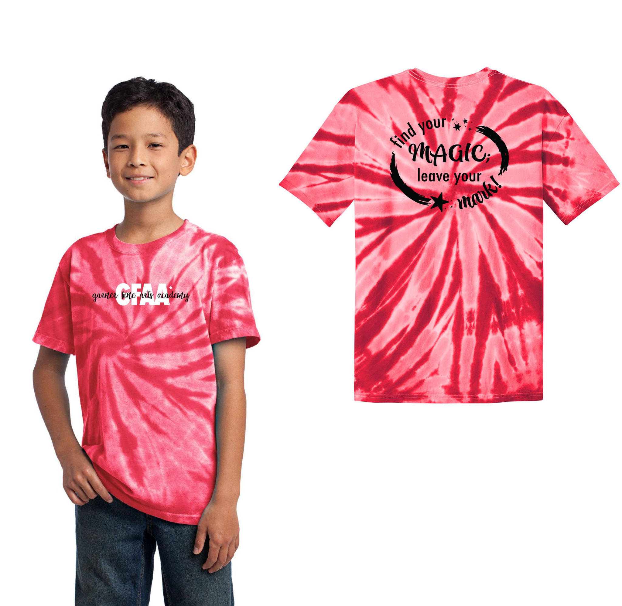 Garner Fine Arts Academy Spirit Wear On-Demand-Youth Unisex Port & Co Tie-Dye Shirt On-Demand Front & Back