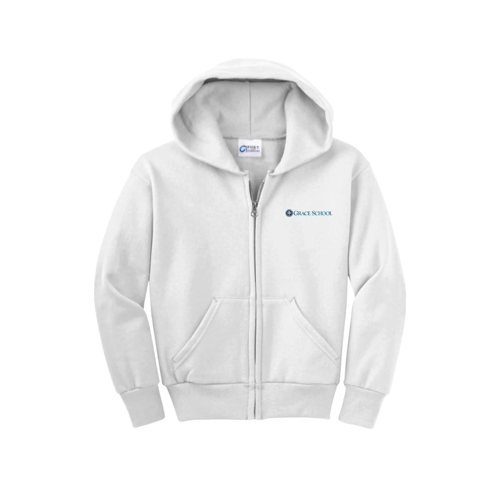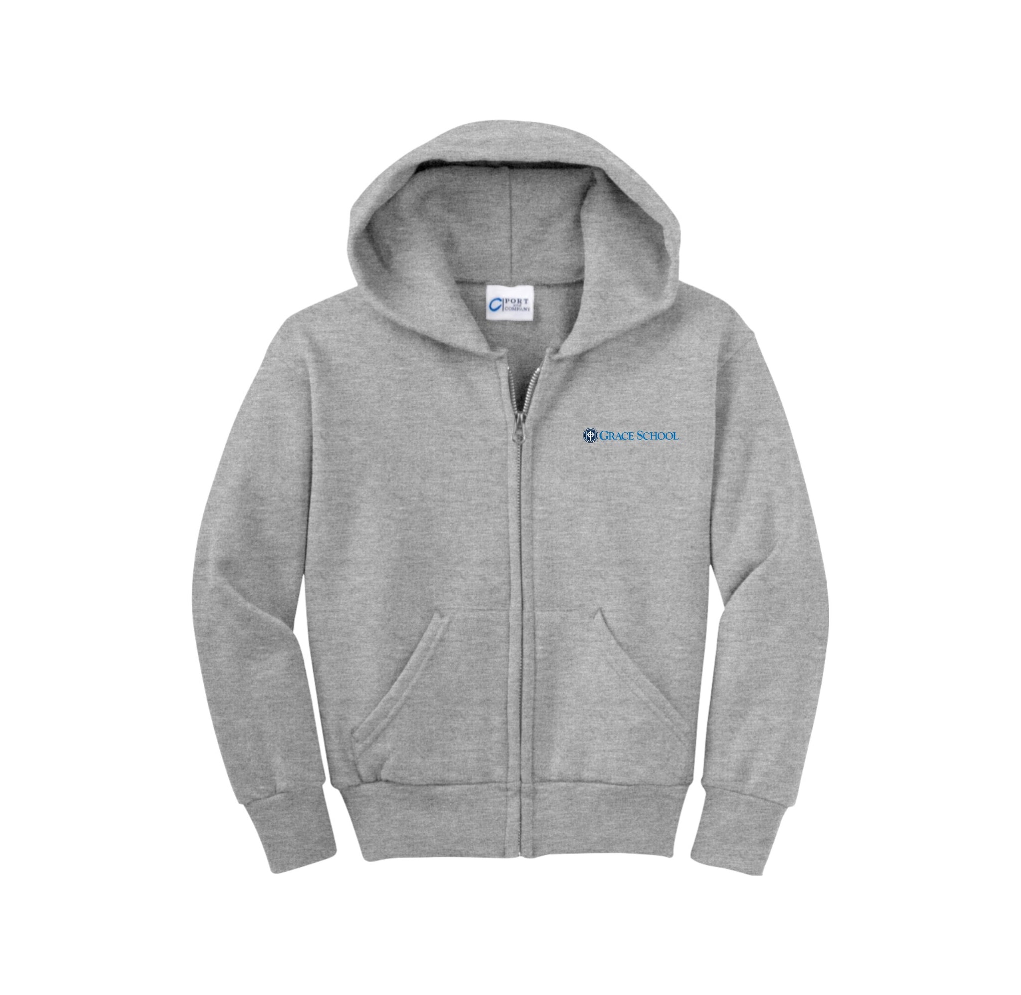 Grace School-Youth Port & Co Unisex Core Fleece Full-Zip Hooded Sweatshirt On-Demand Typographic Logo