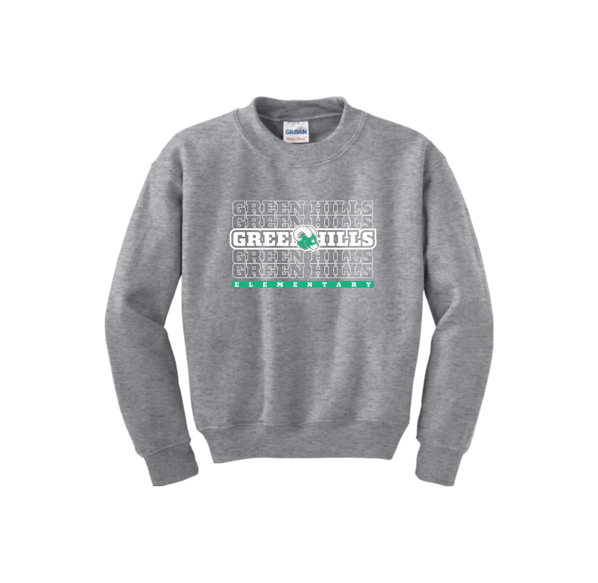 Green Hills Elementary Spirit Wear On-Demand-Youth Gildan Unisex Crewneck Sweatshirt On-Demand Typographic Logo