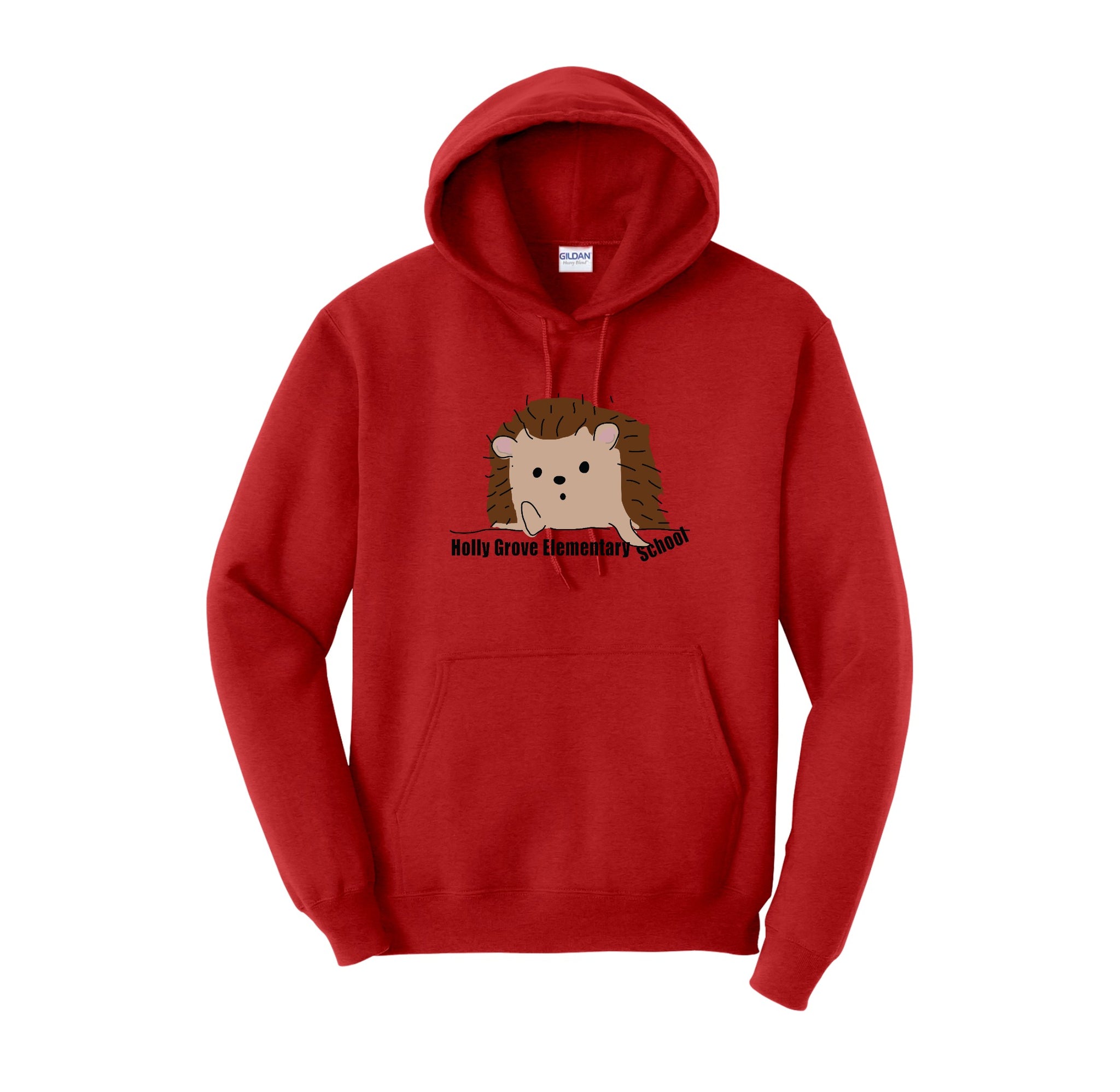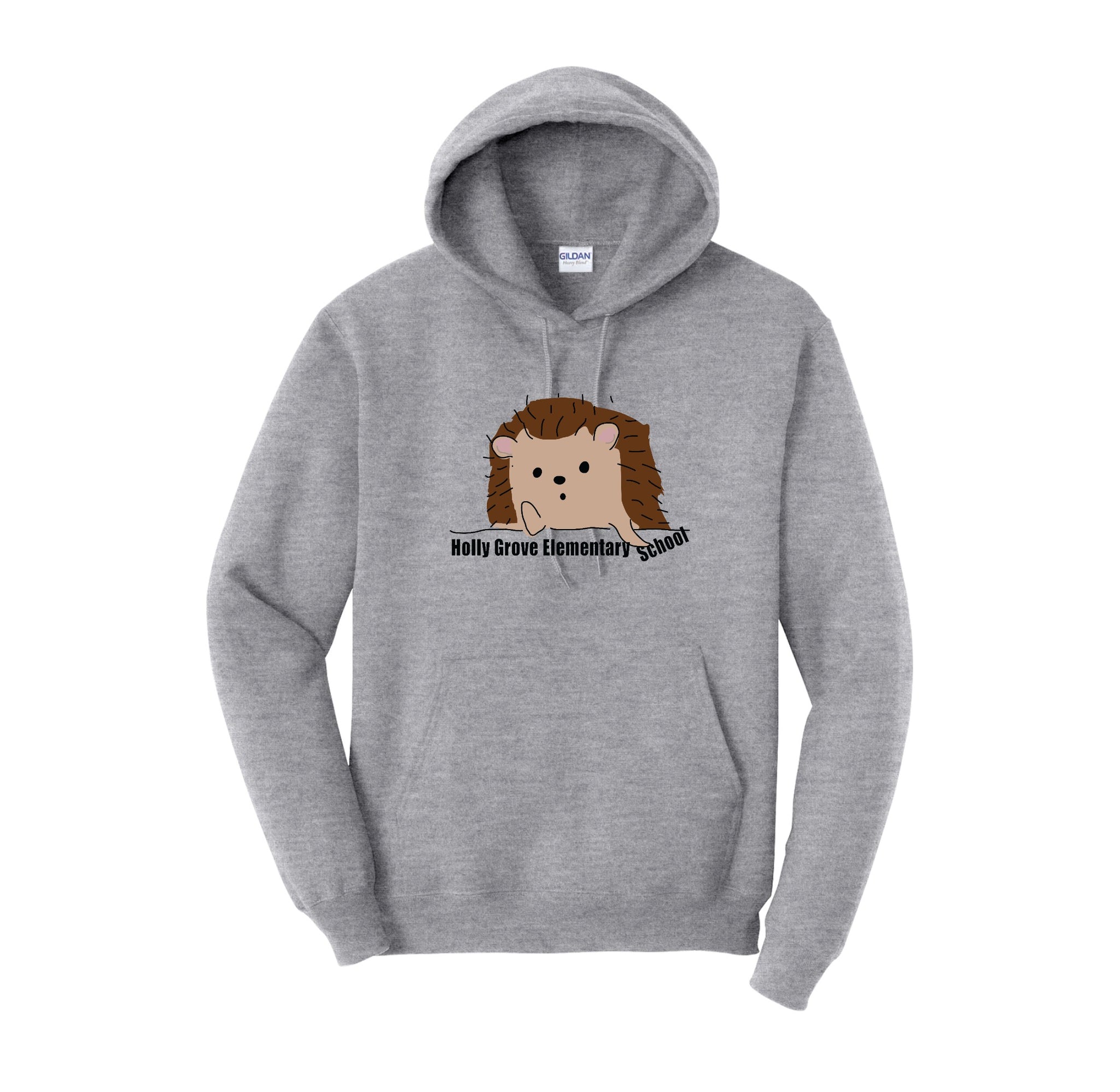 Holly Grove Elementary Spirit Wear On-Demand-Adult Unisex Hoodie Stripe Thinking Hedgehog Logo