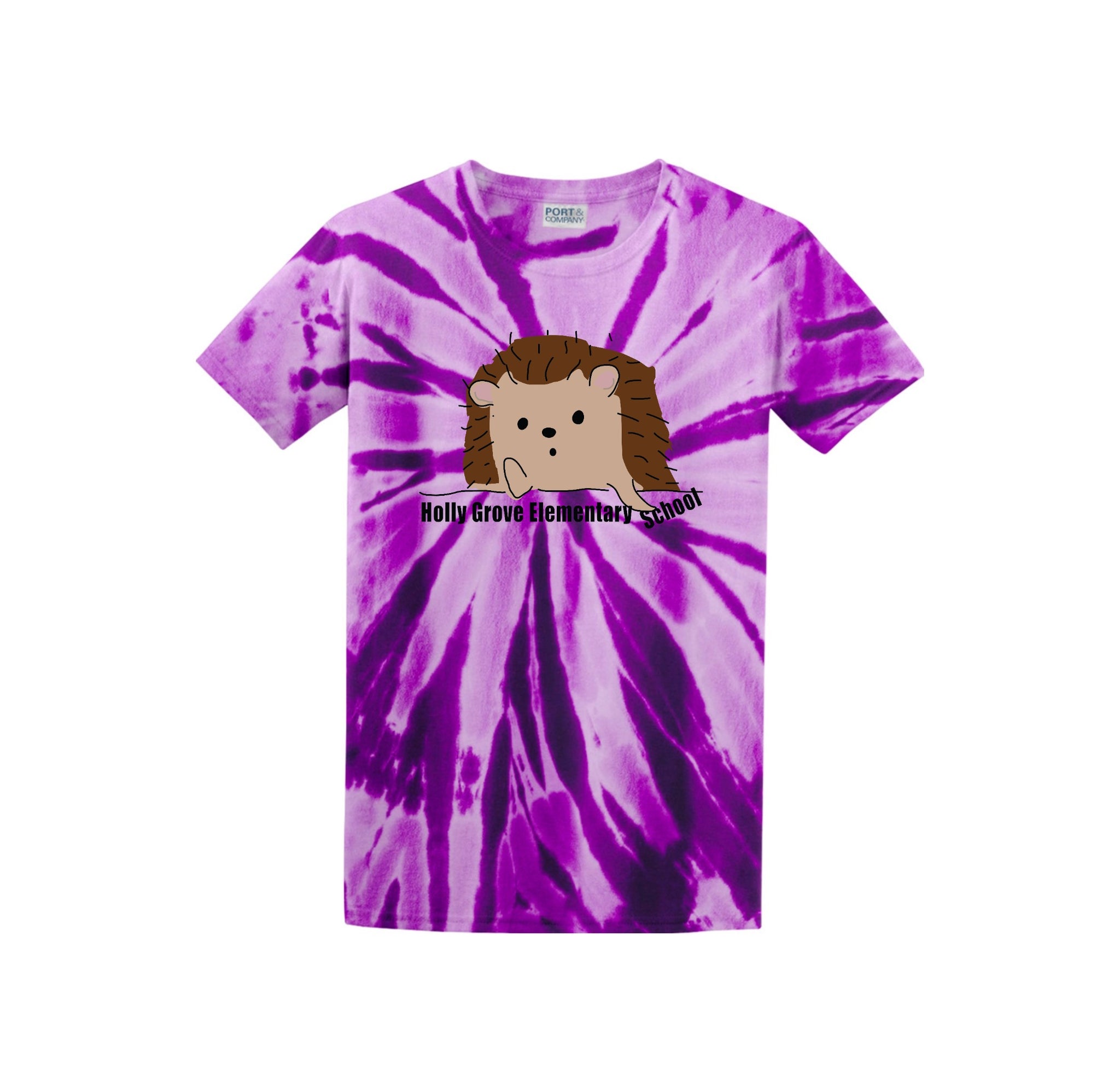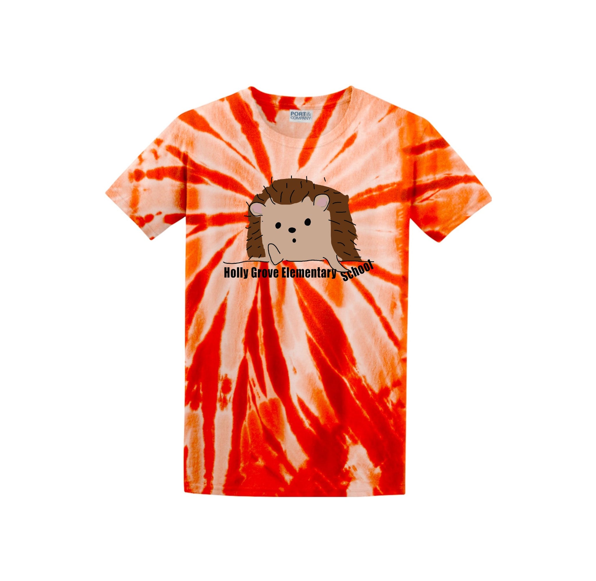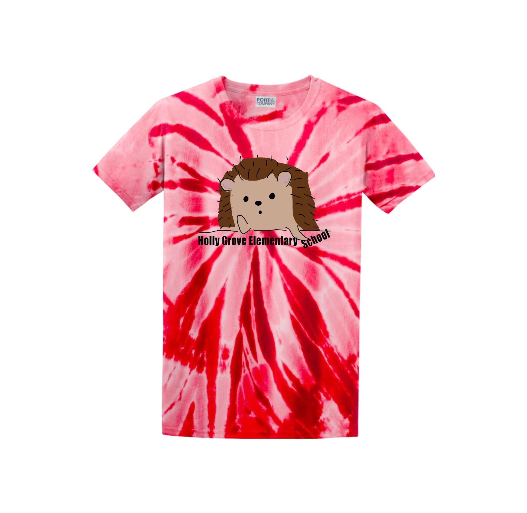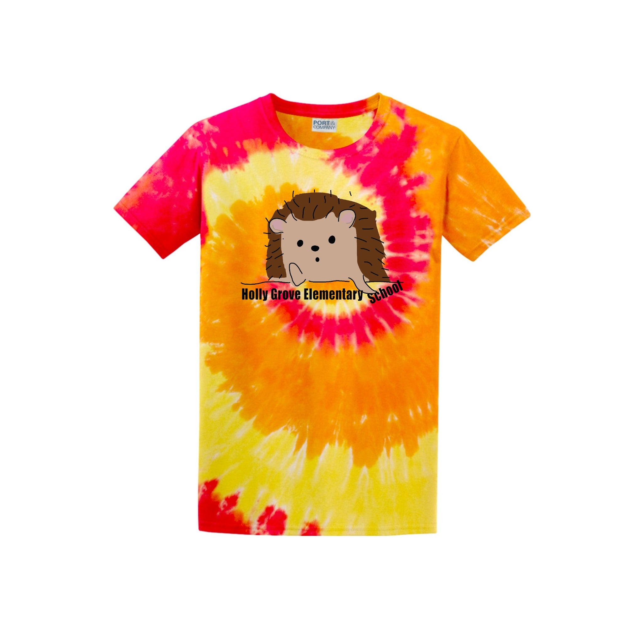 Holly Grove Elementary Spirit Wear On-Demand-Adult Unisex Tie-Dye Shirt StripeThinking Hedgehog Logo