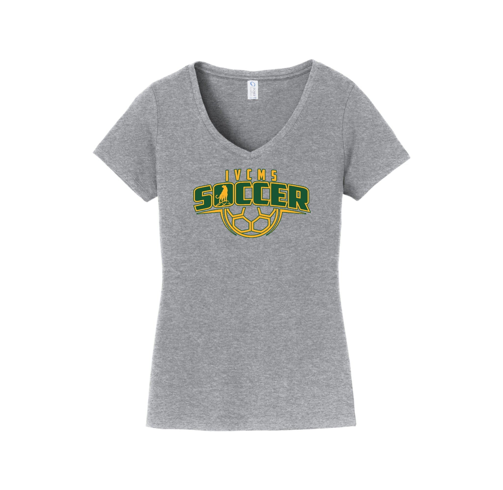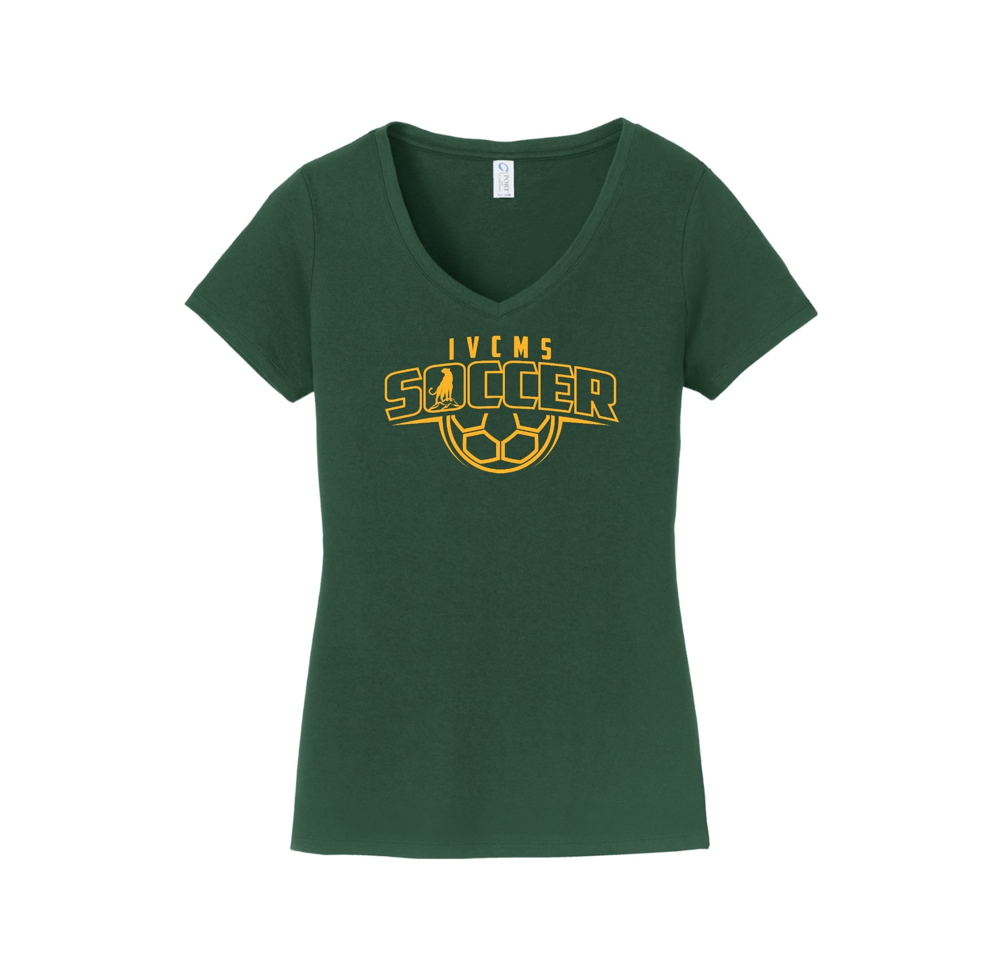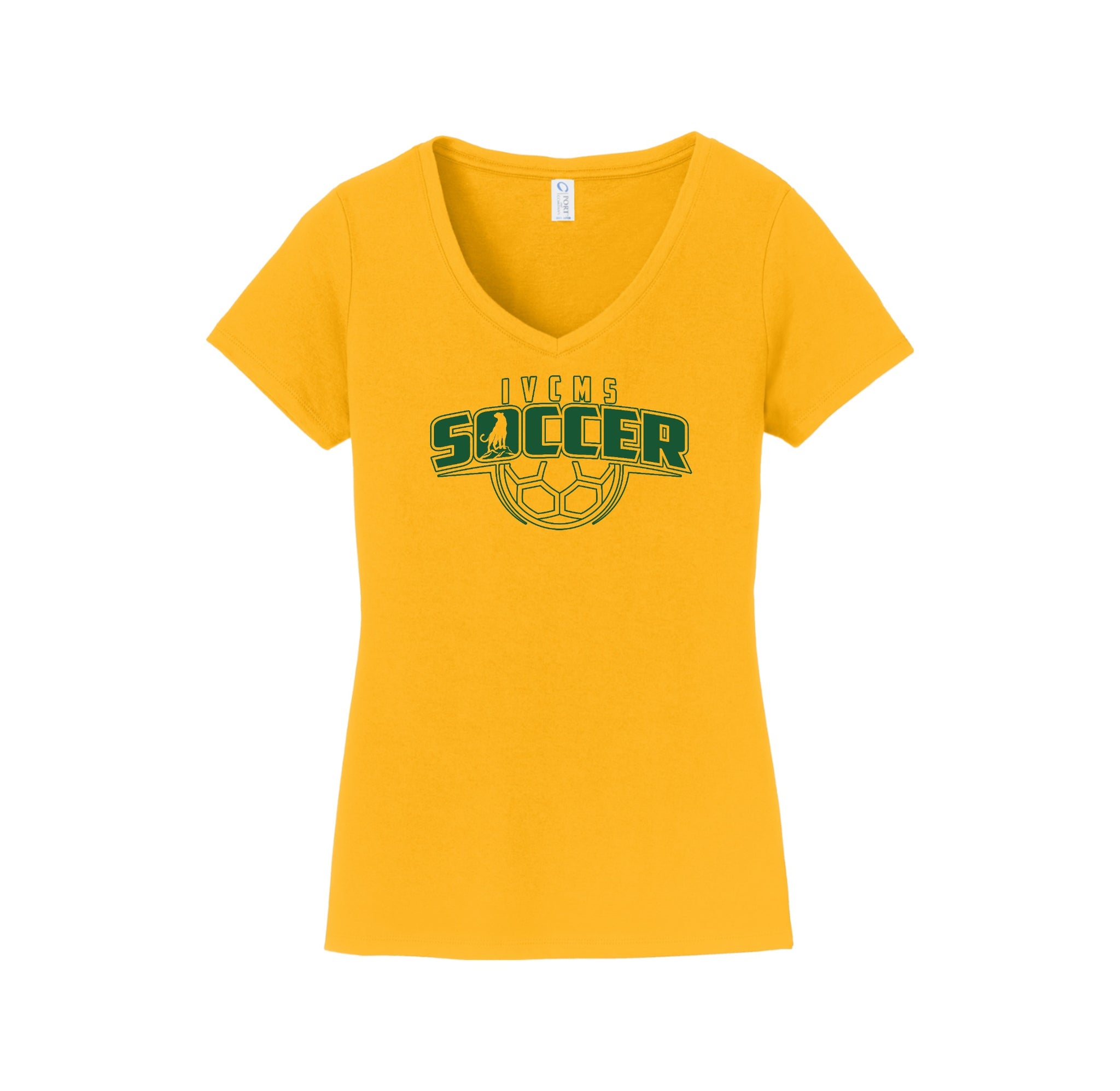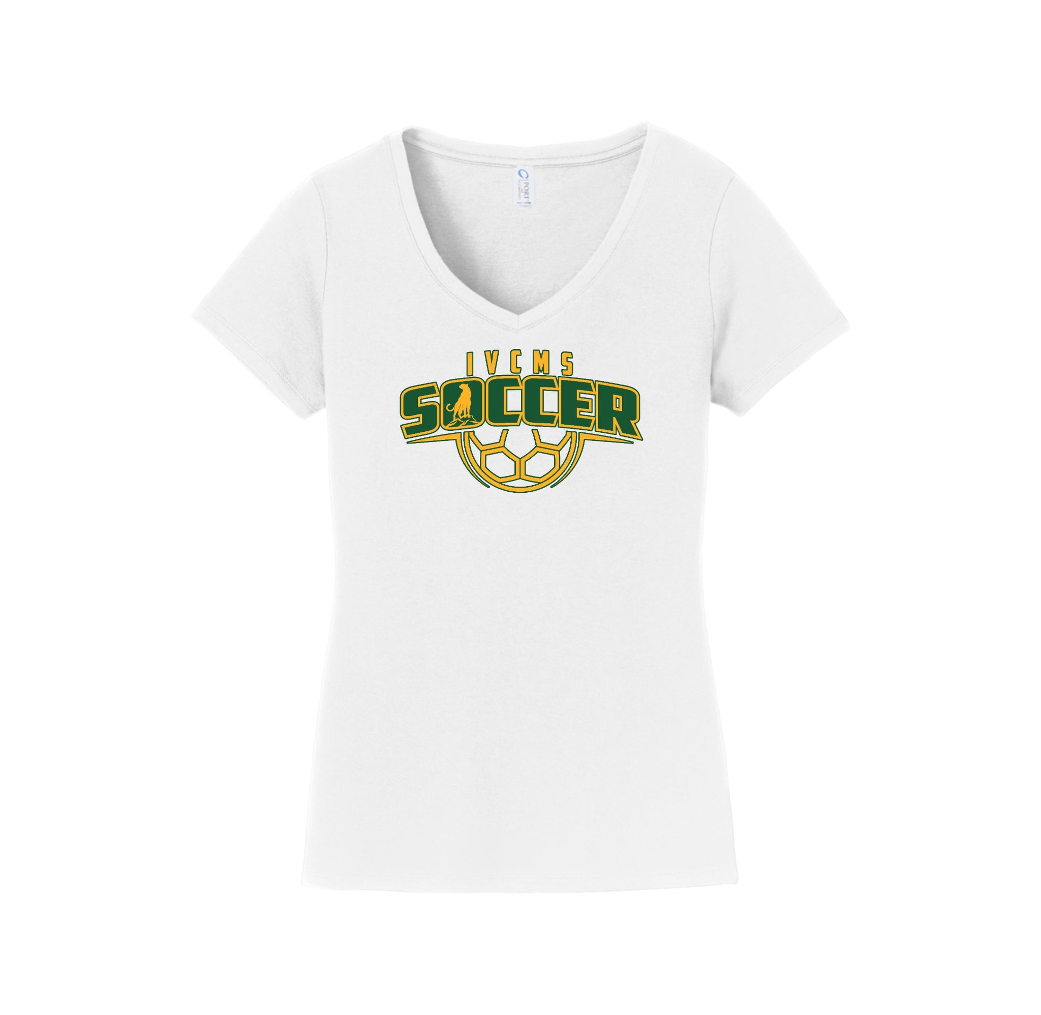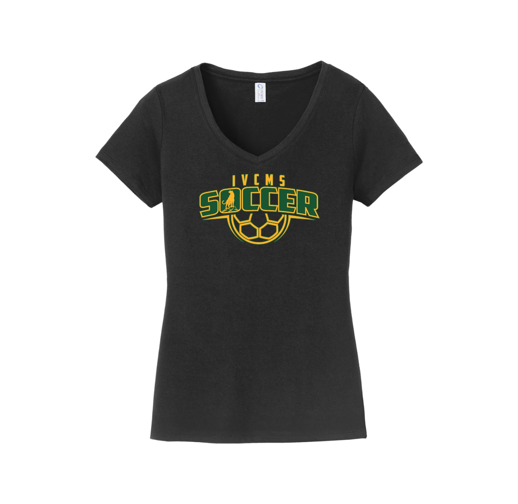 Itliong-Vera Cruz Middle School Athletics-Womens Port & Co Fan Favorite V-Neck Tee On-Demand Soccer Logo
