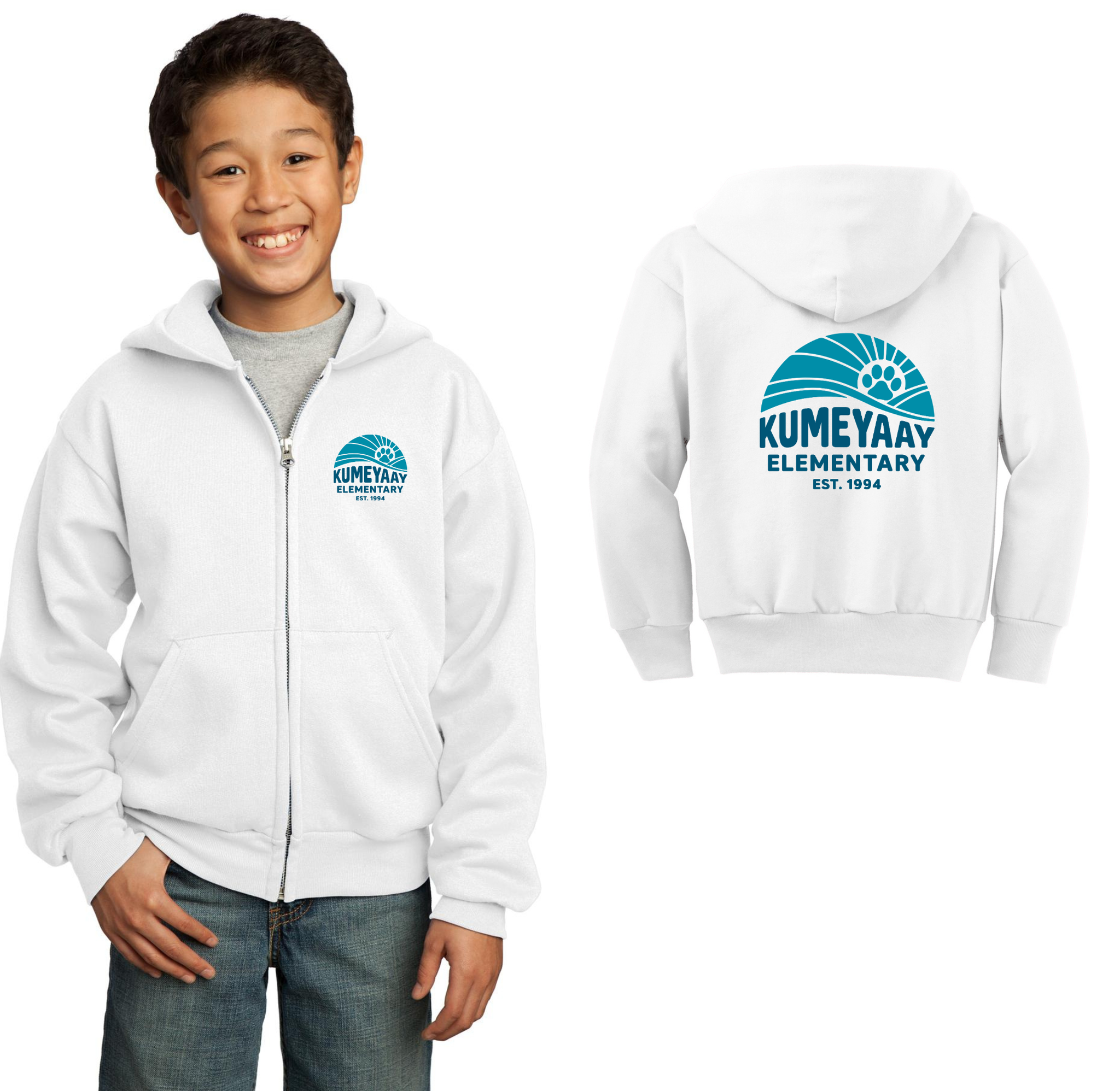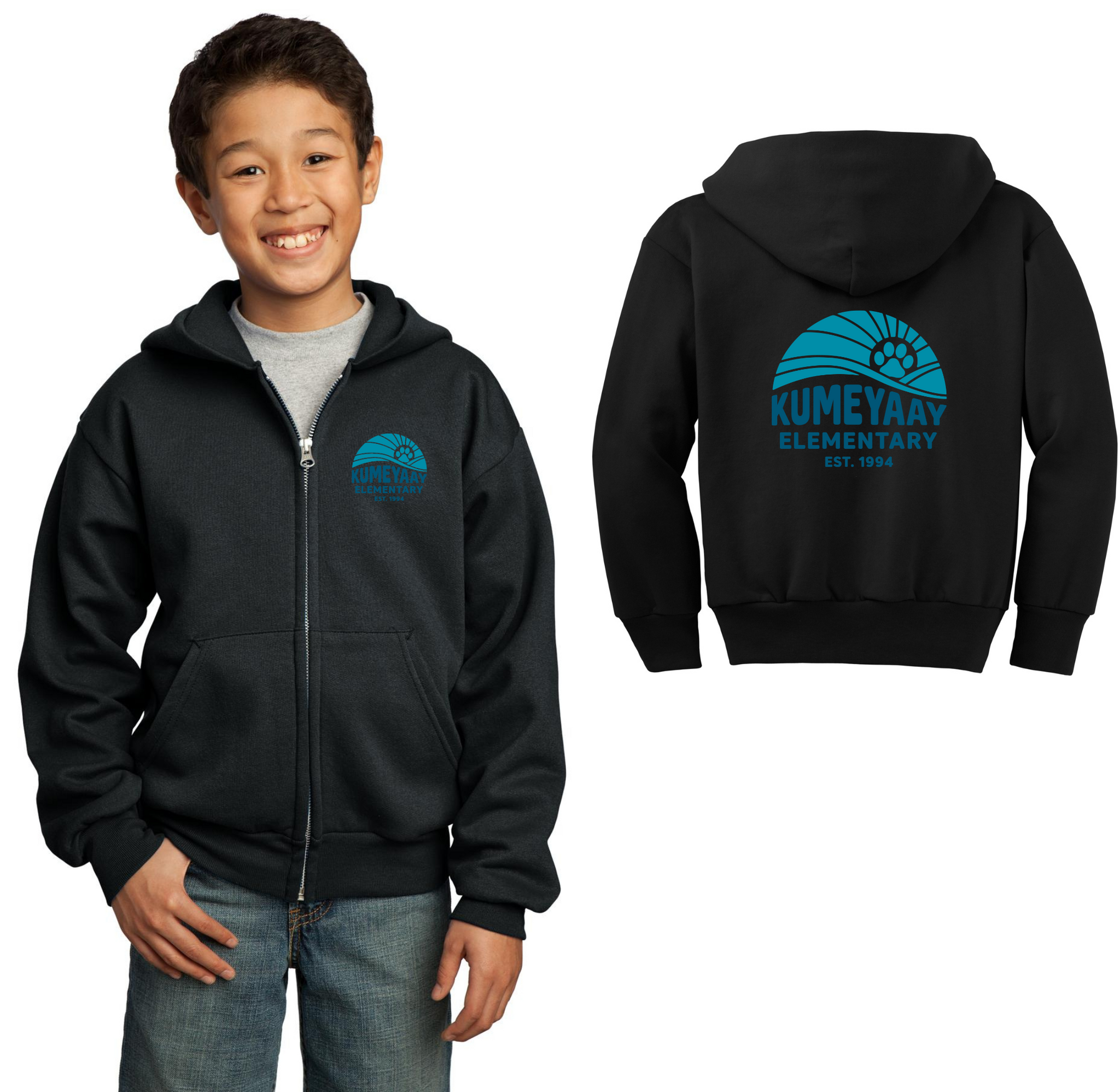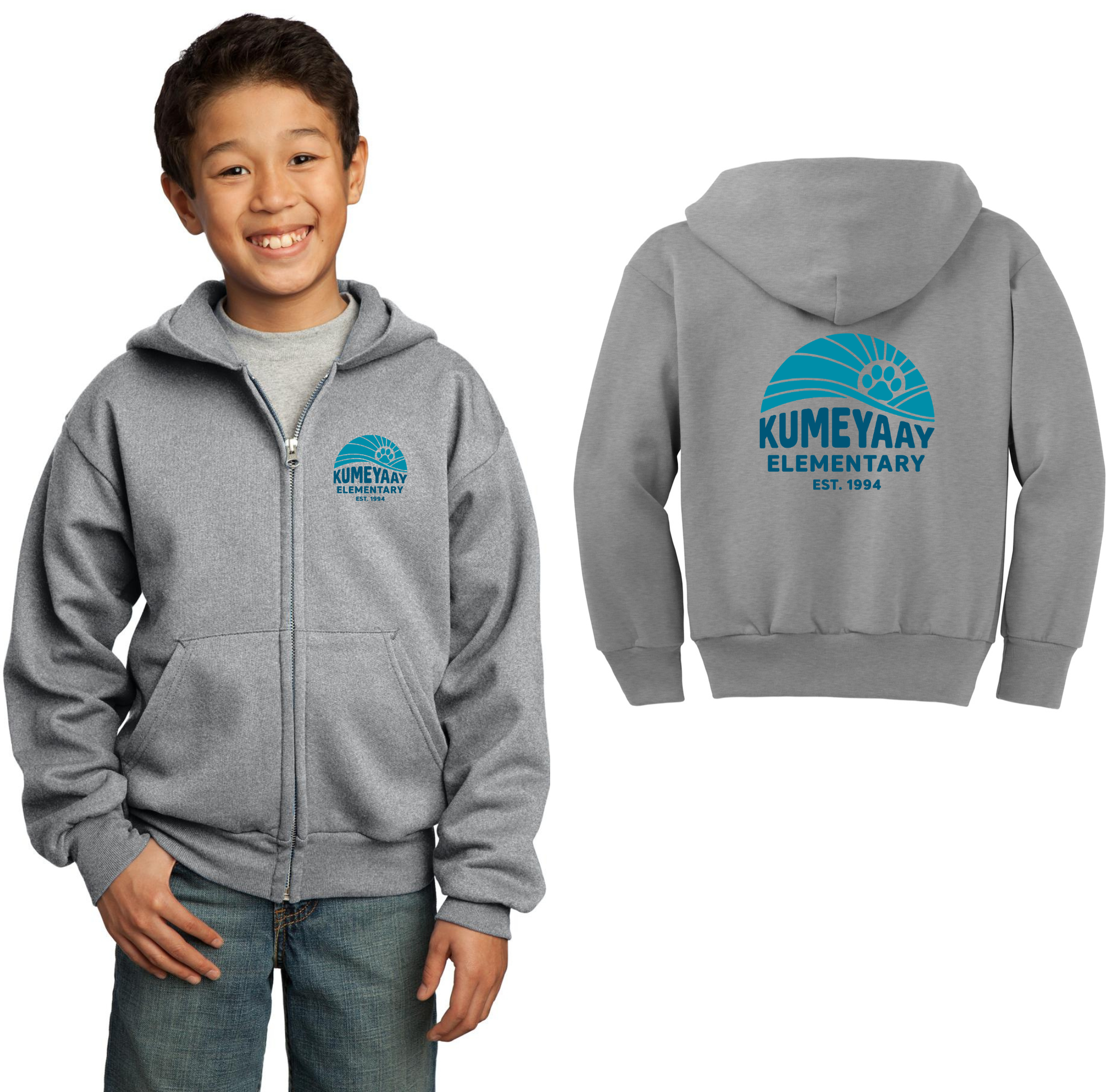 Kumeyaay Elementary-Youth Port & Co Unisex Core Fleece Full-Zip Hooded Sweatshirt On-Demand Kumeyaay