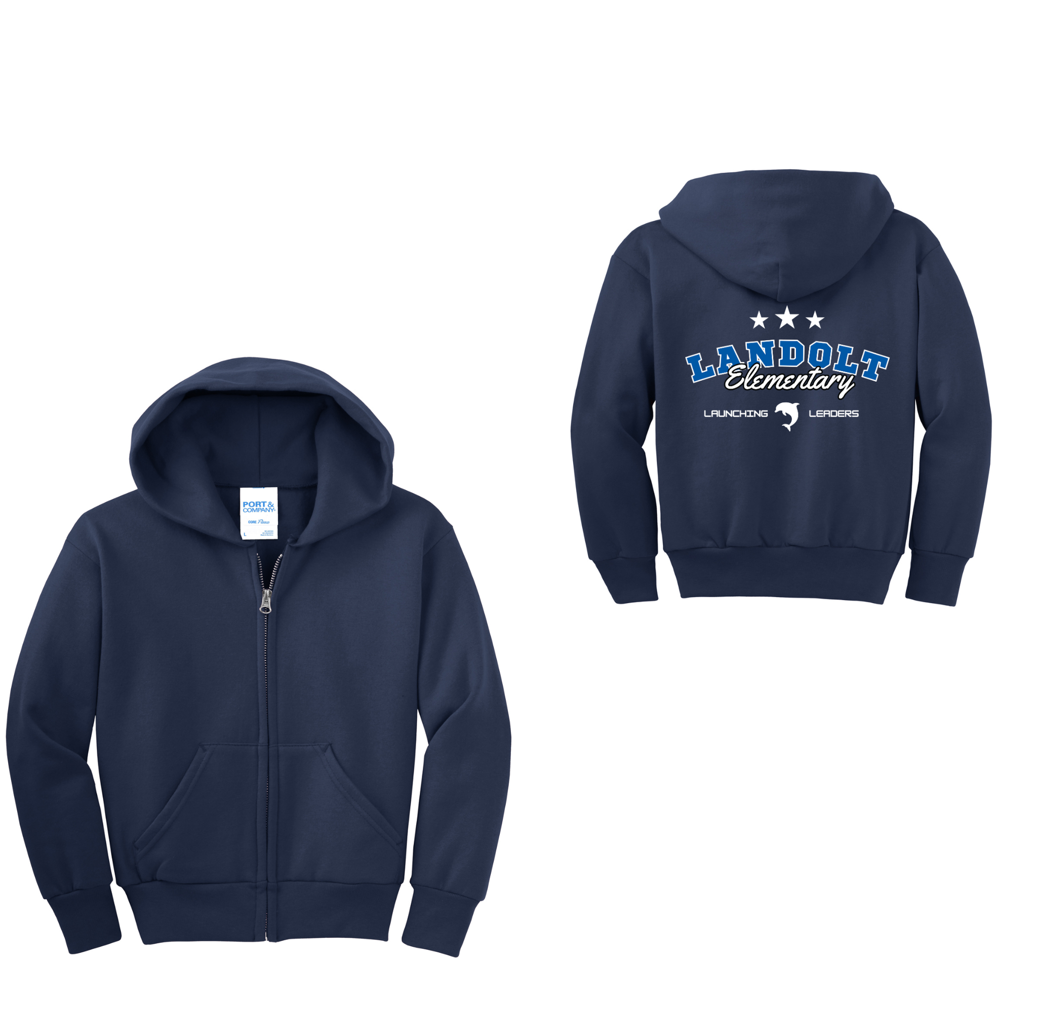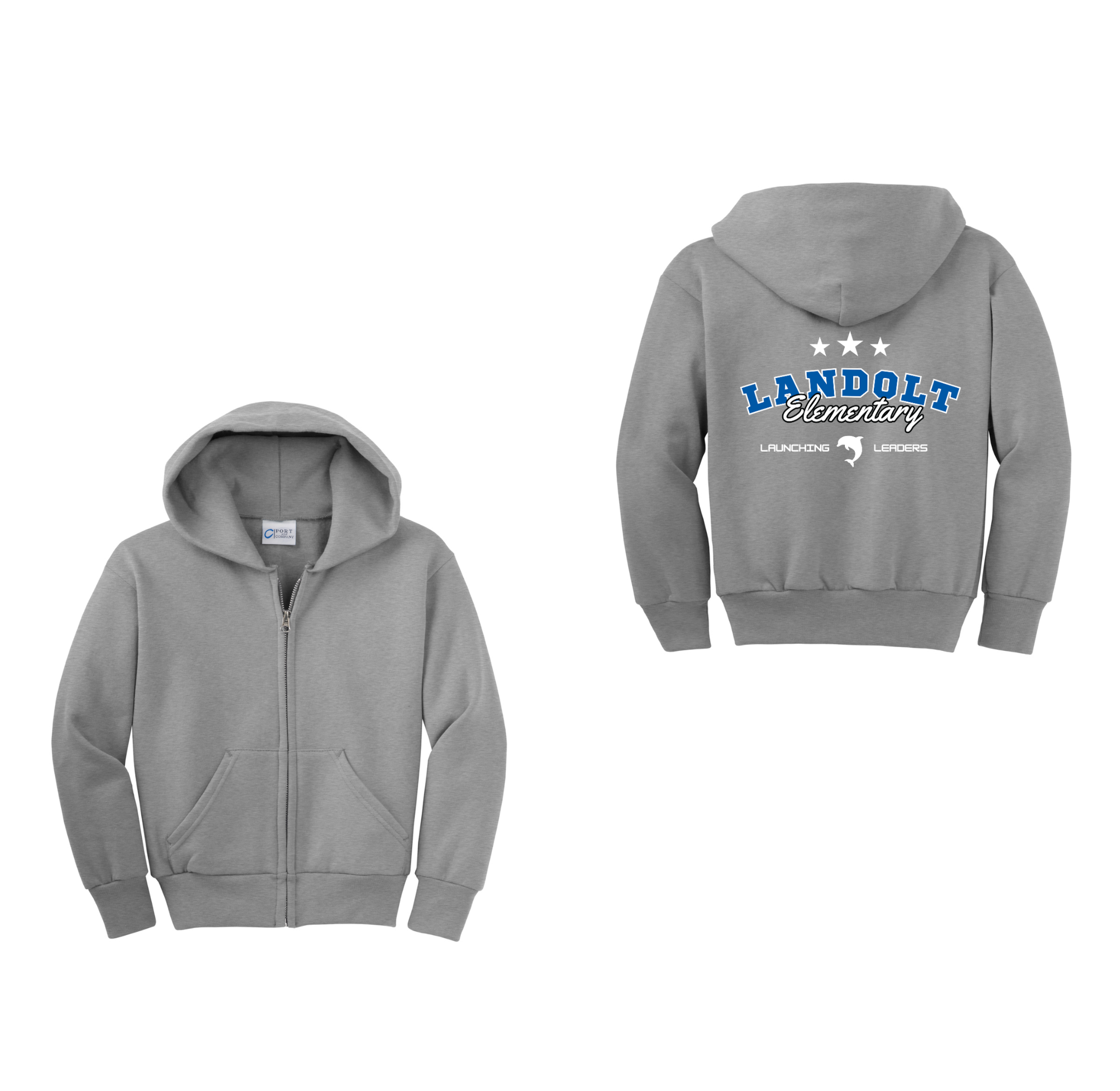 Landolt Elementary Spirit Wear On-Demand-Youth Unisex Port & Co Full-Zip Hooded Sweatshirt On-Demand Stars Logo