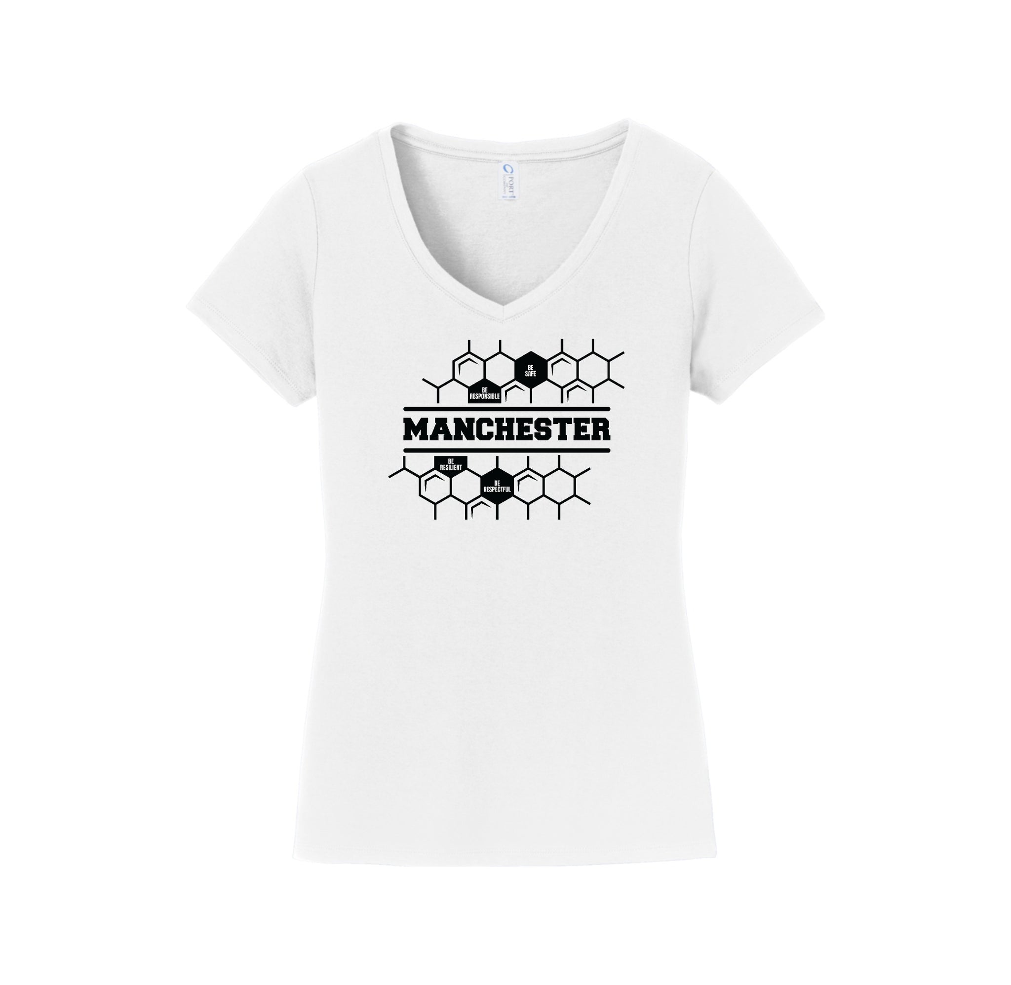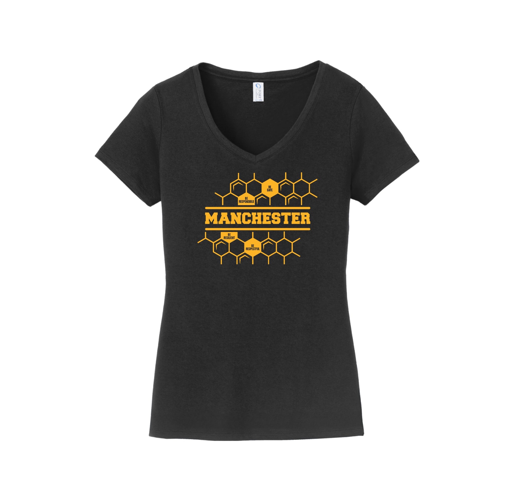 Manchester Elementary On-Demand-Womens Port & Co Fan Favorite V-Neck Tee On-Demand Honeycomb Logo