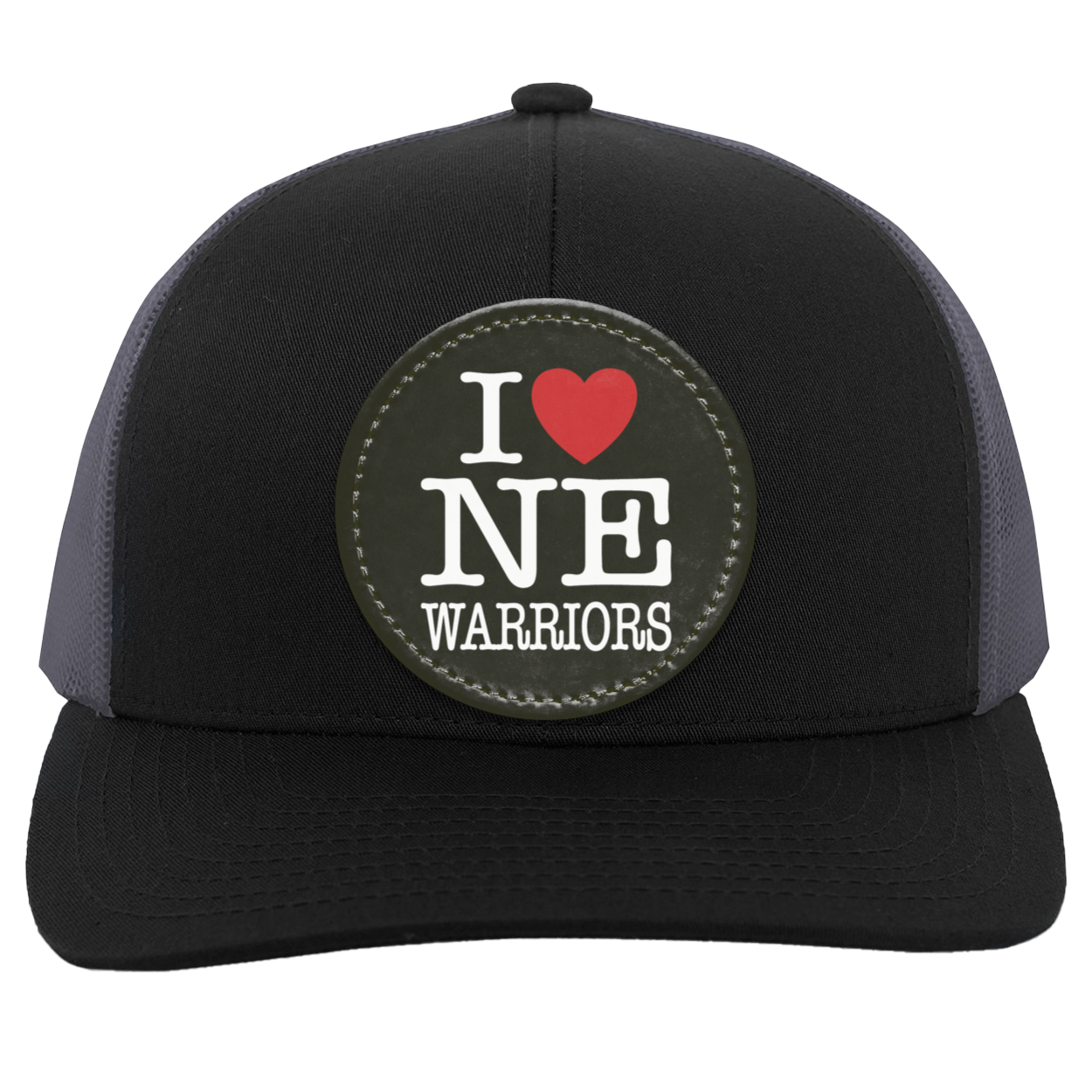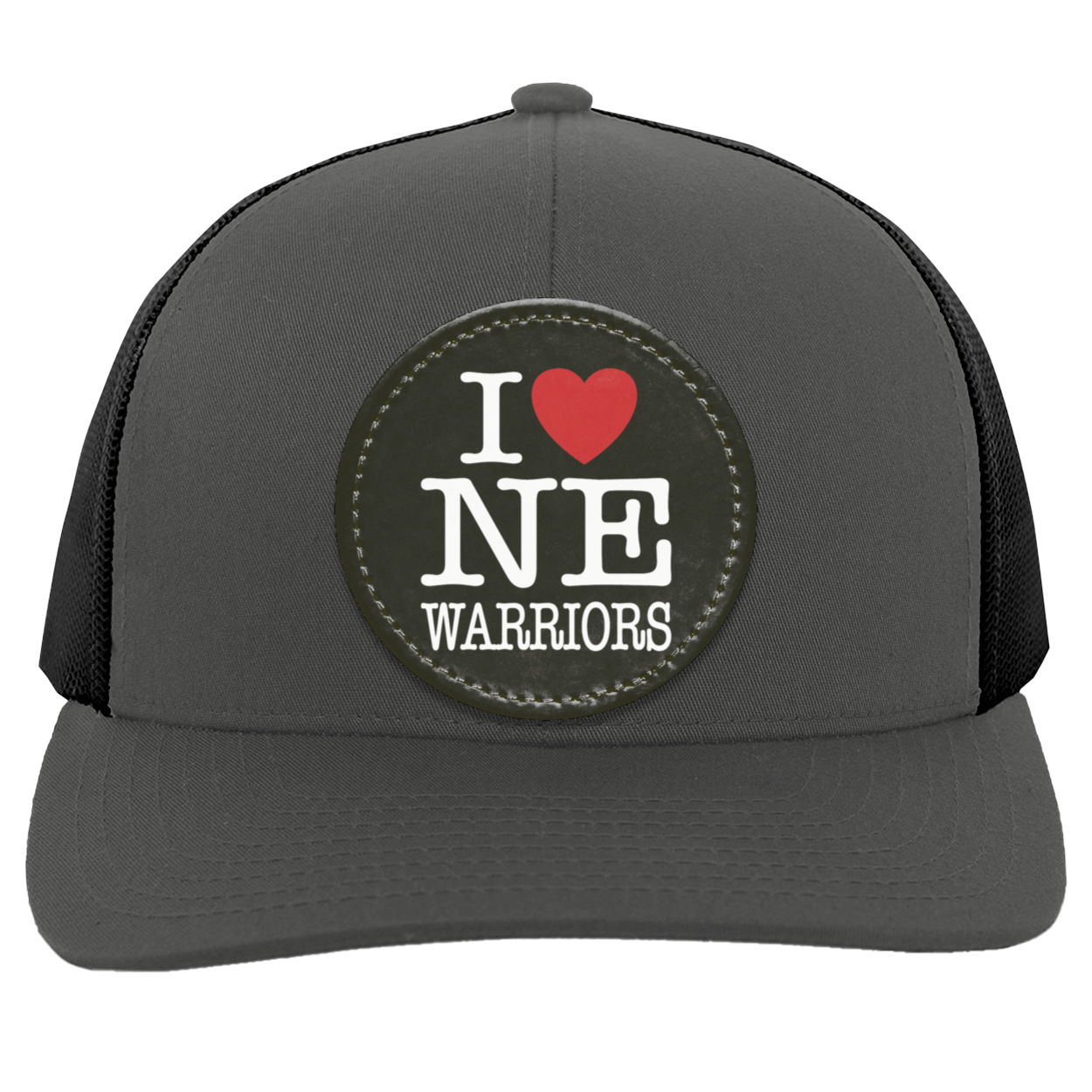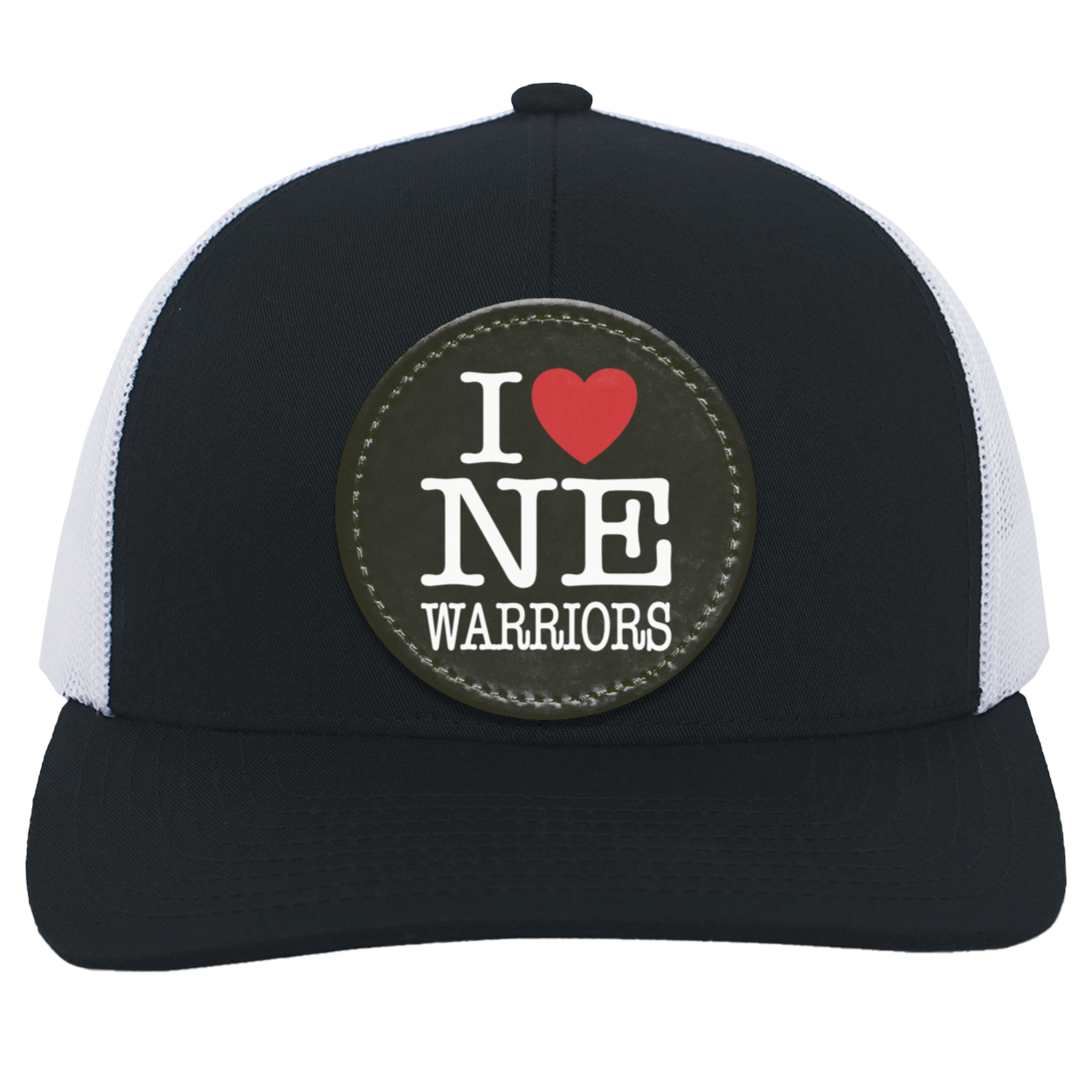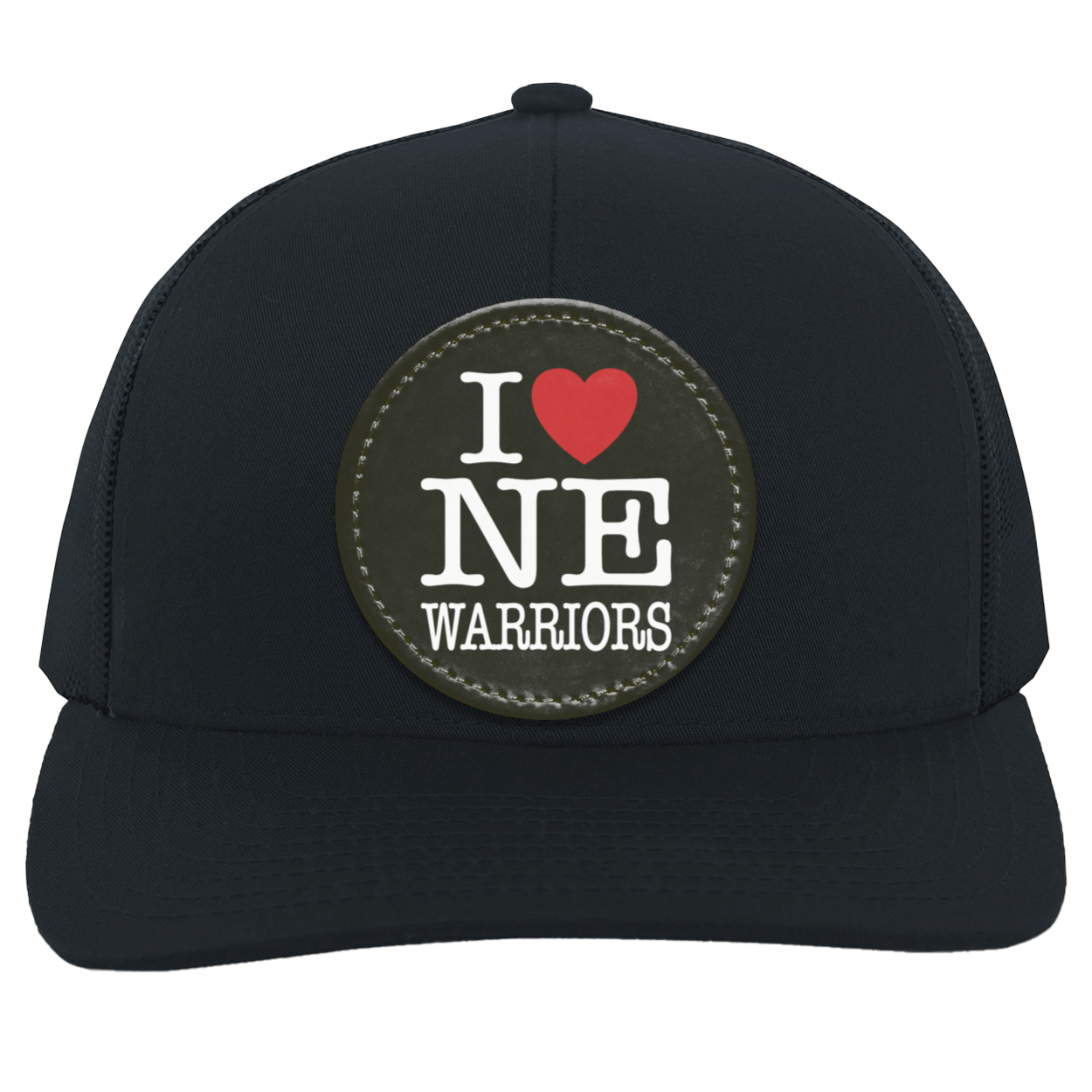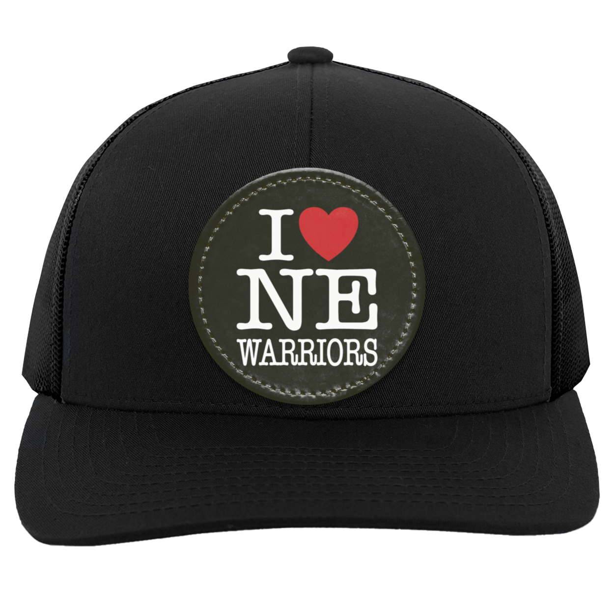 Cotton/Poly Blend Front Panels & Curved VisorTrucker Mesh back with Snap Closure (One Size Fits Most)Mid-profile & Pro-Model Crown for a comfortable & stylish fitDecoration type: Sublimated Vegan Leather Patch