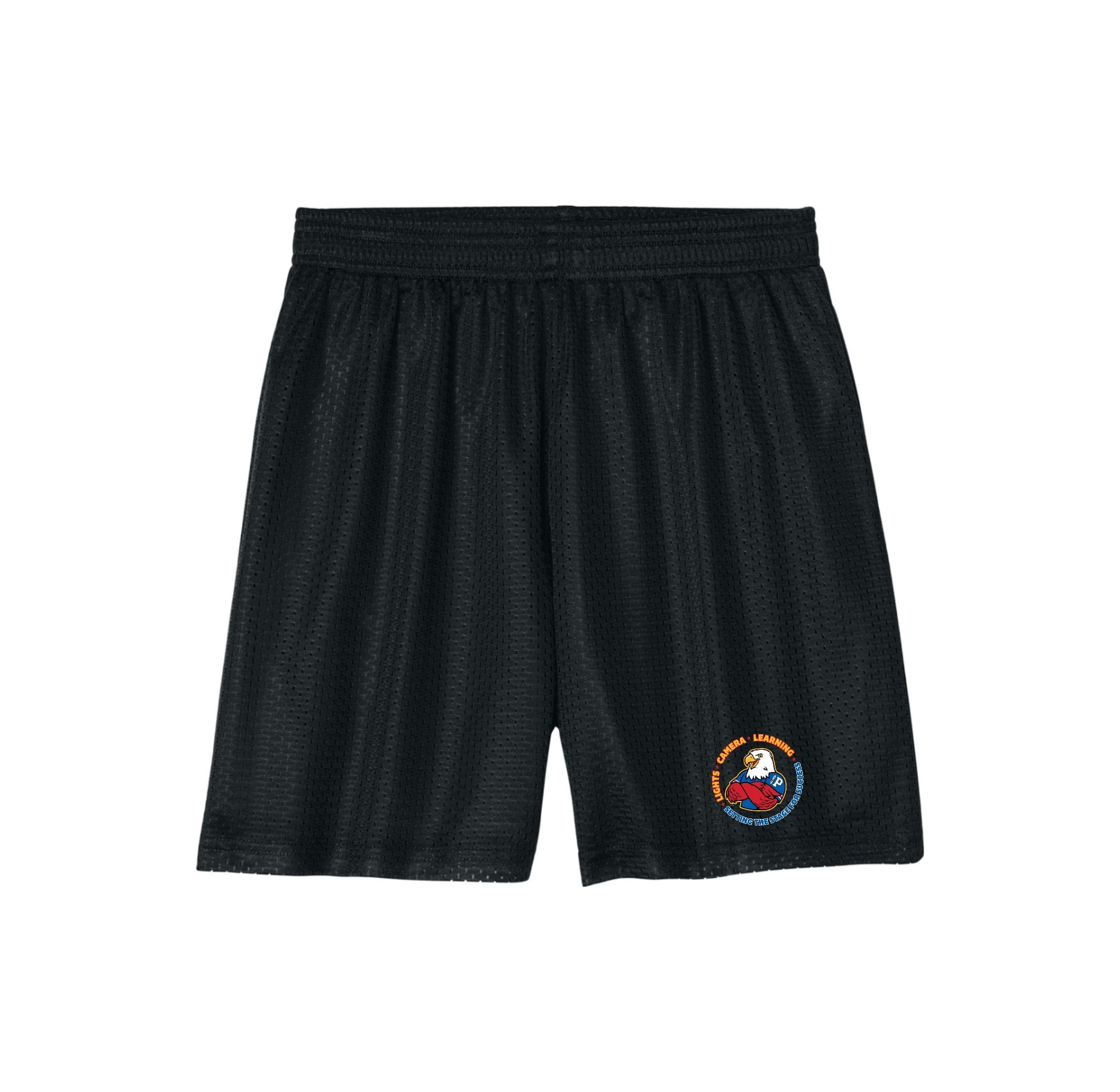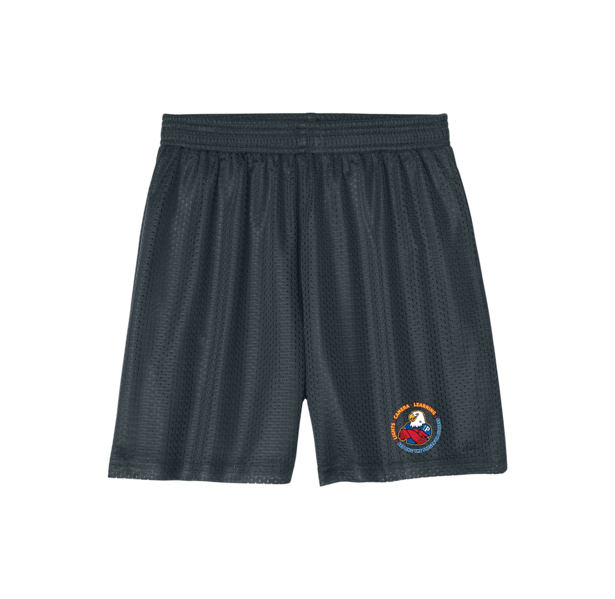 Stay cool and comfortable in these moisture-wicking, open-hole mesh shorts, featuring PosiCharge technology to lock in your logo, a soft tricot lining, a 5-inch inseam, an elastic waistband, a tear-away label, and no drawcord.