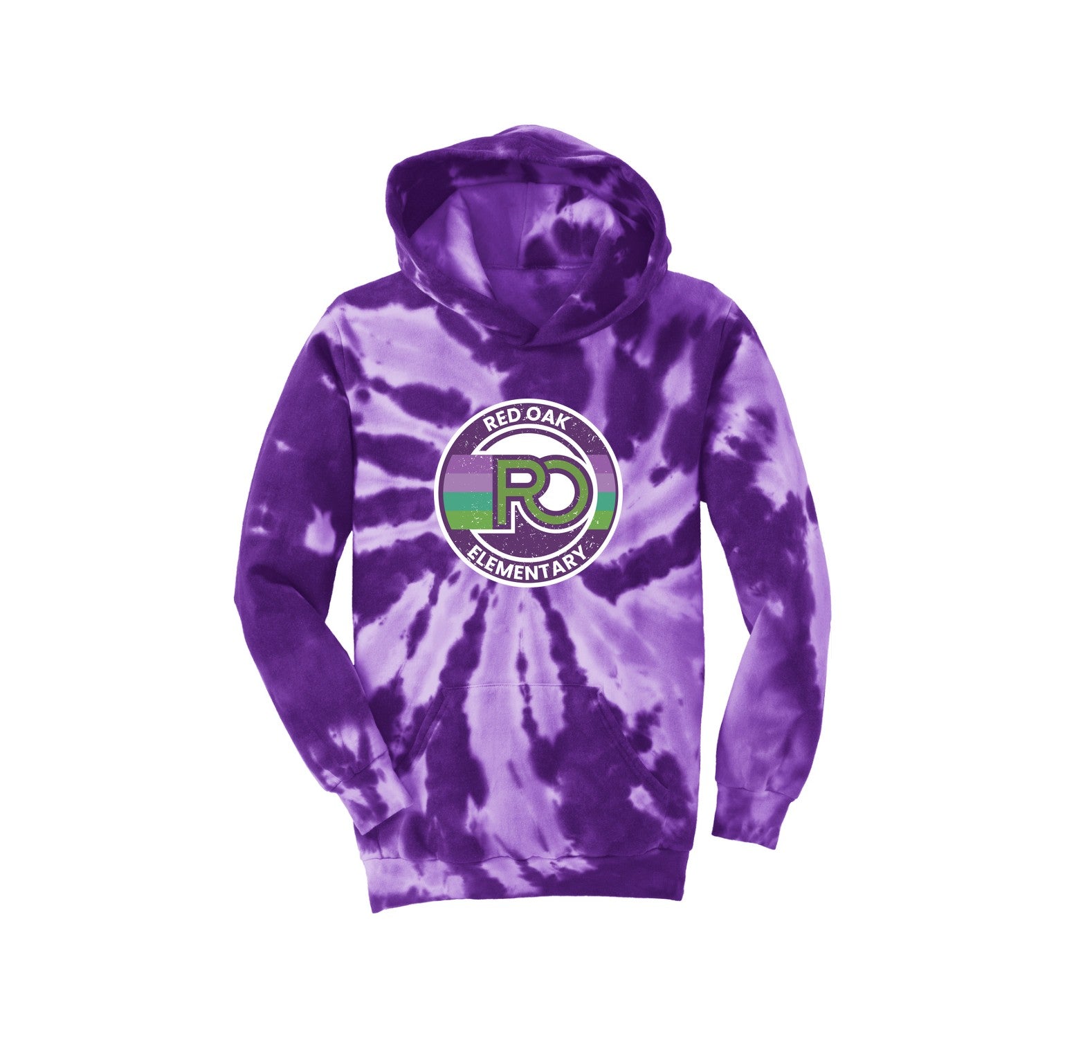 Red Oak-Youth Port & Co Unisex Tie-Dye Pullover Hooded Sweatshirt Circle Logo