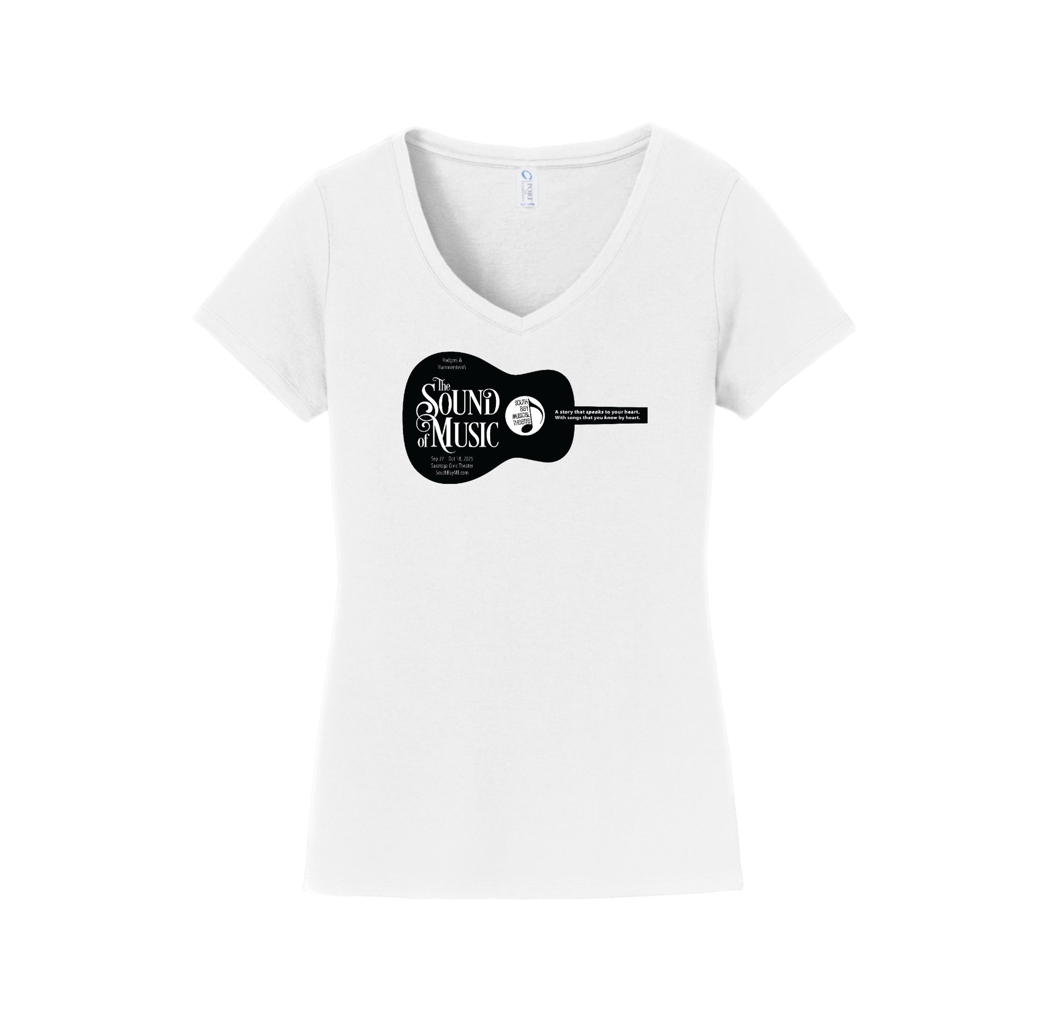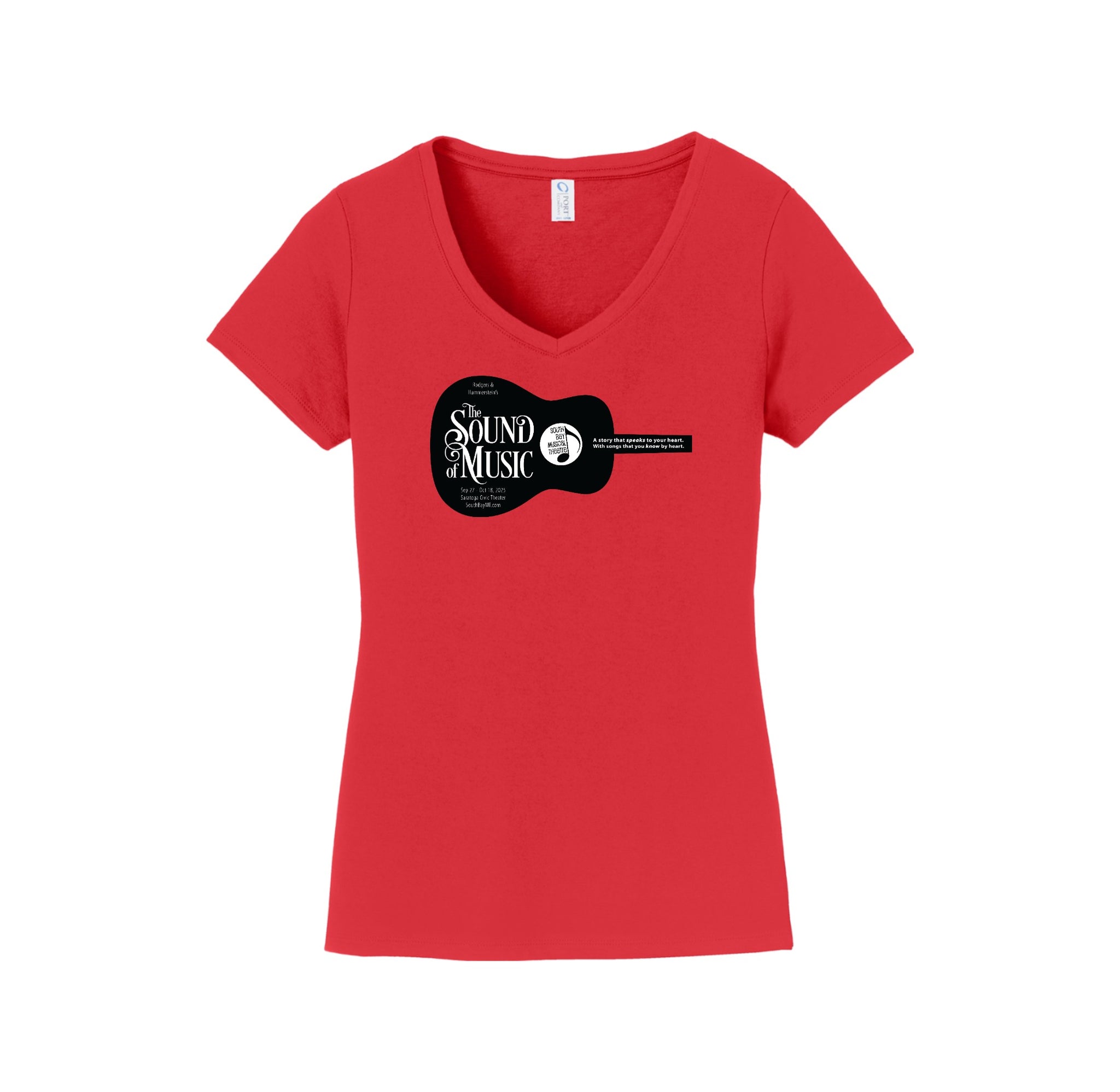 SBMT-Womens Port & Co V-Neck Tee Guitar Logo